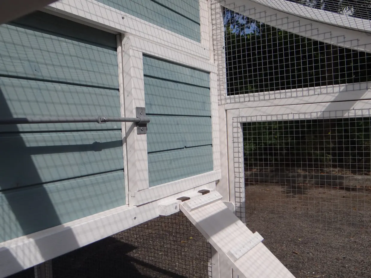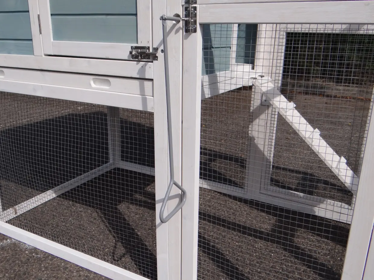 - Wanneer het hok niet op een beschutte plaats staat, dan adviseren wij om het te verankeren