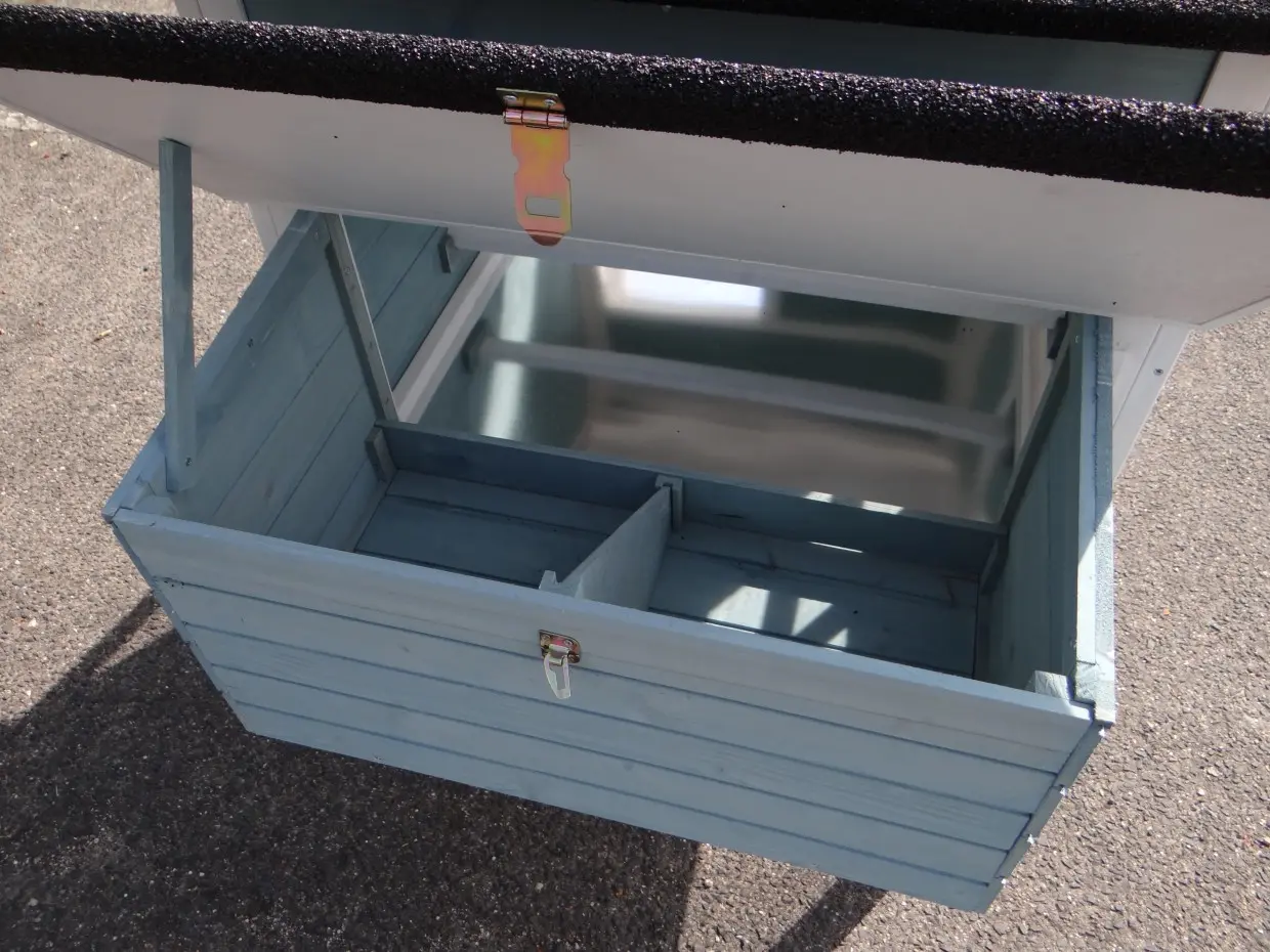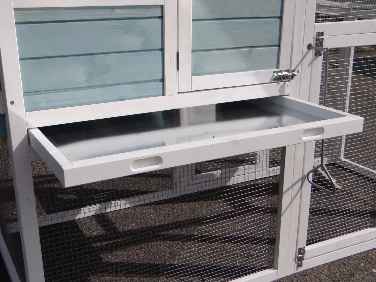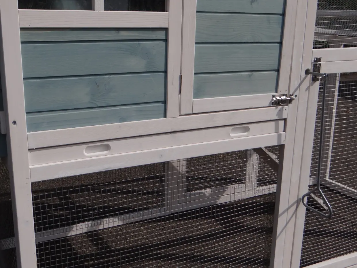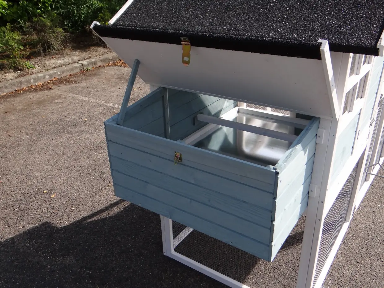 - Metalen schuiflade (zink) om het hok handig schoon te maken