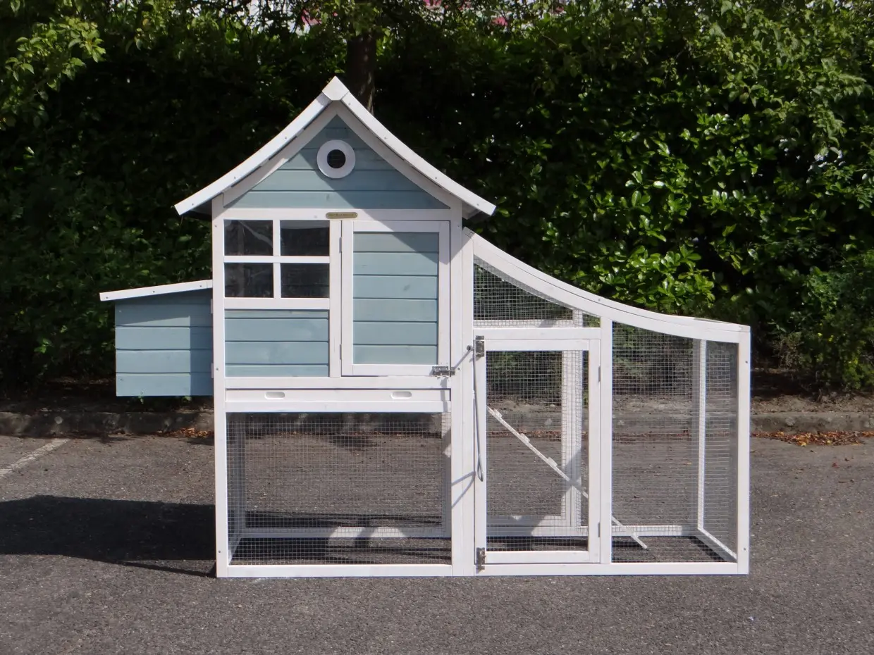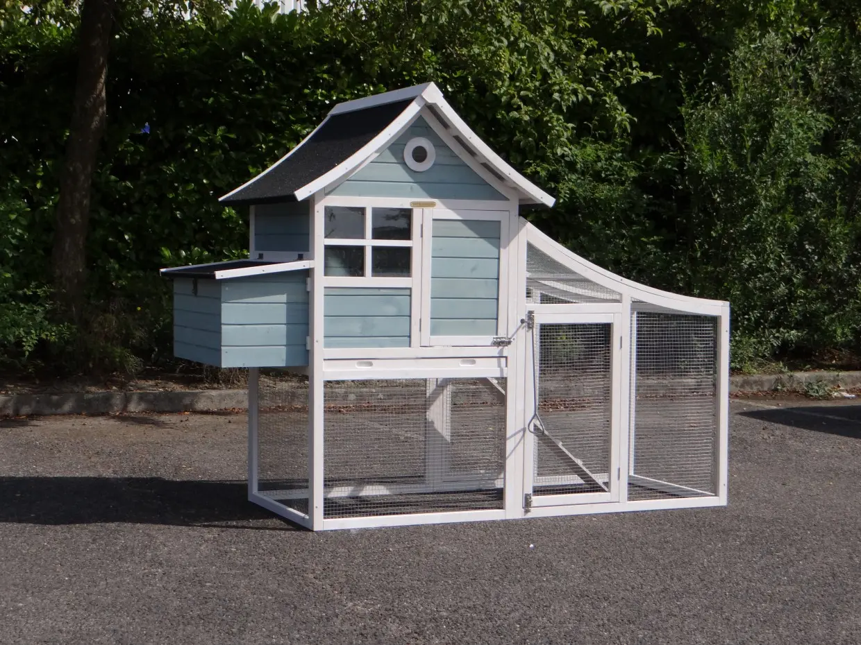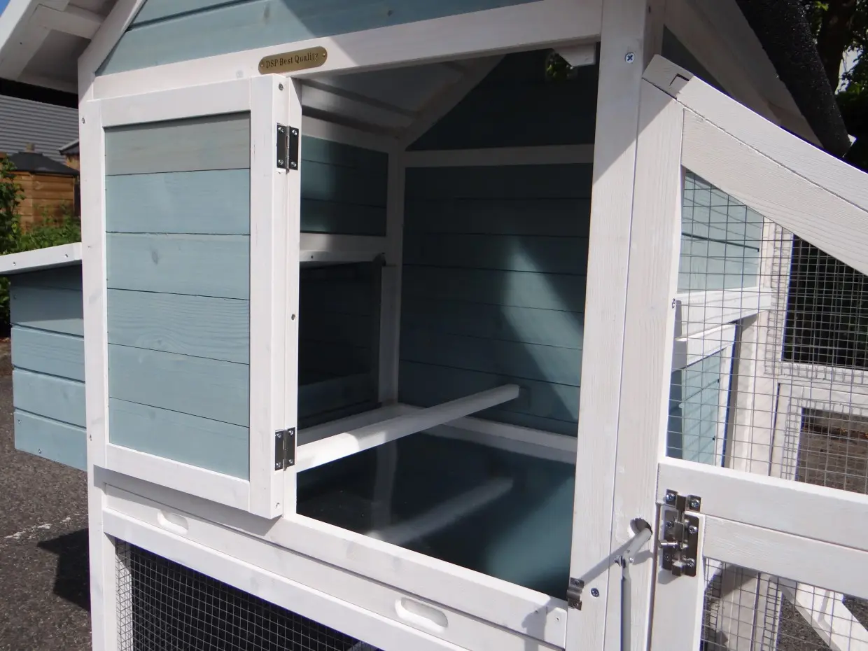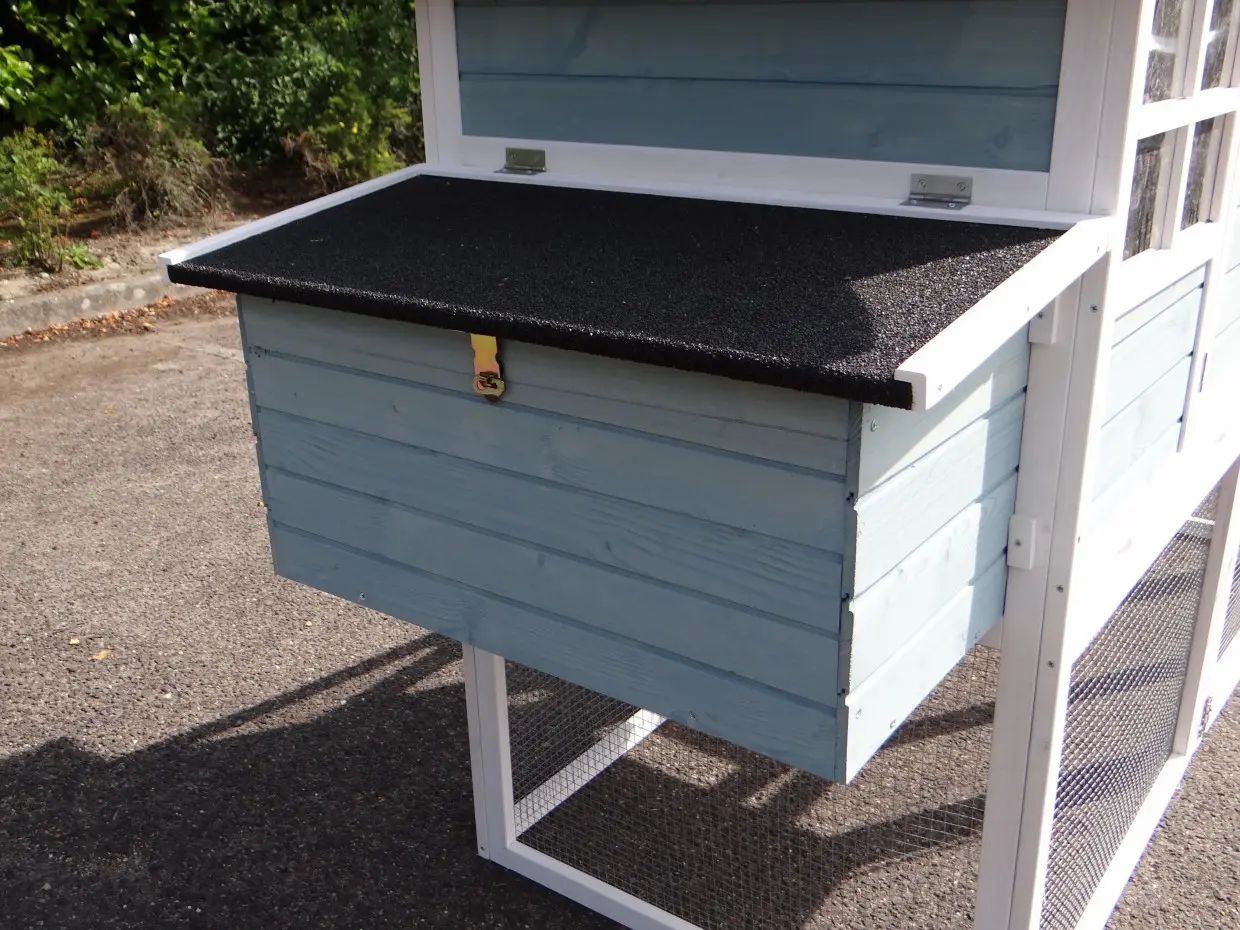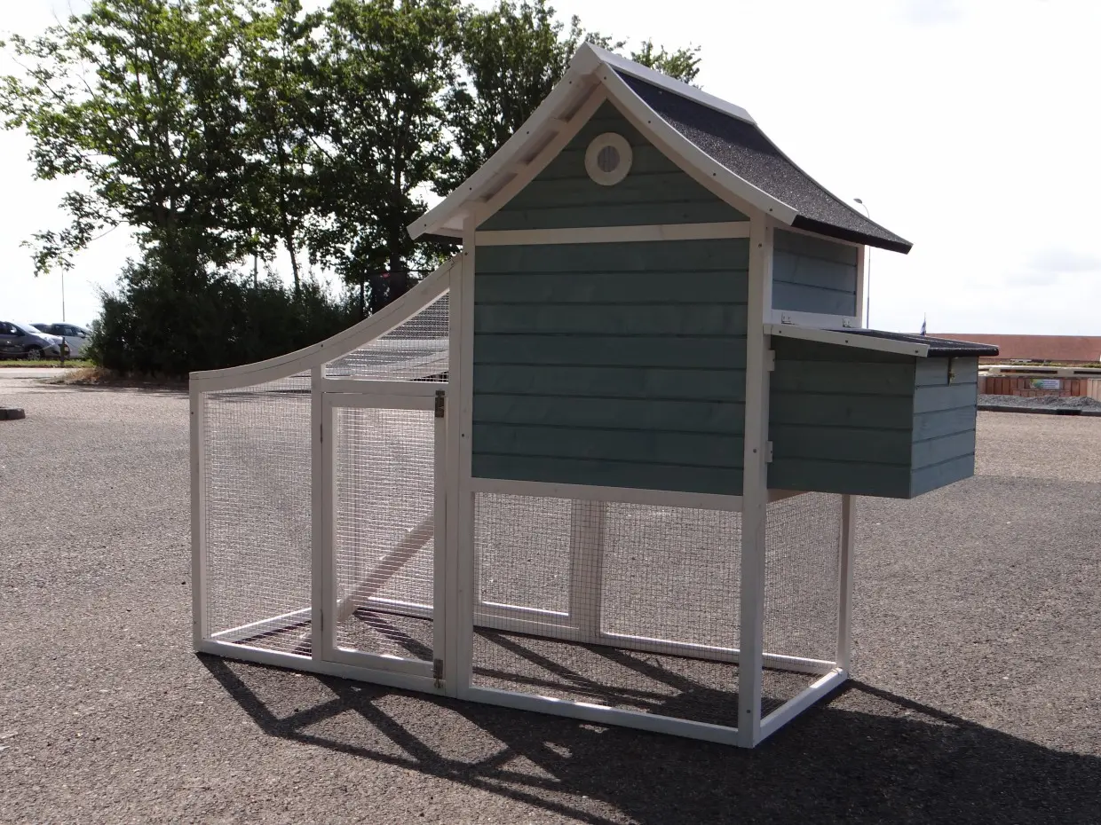 Dit kippenhok Nijntje heeft een opvallende vorm en is daarom erg populair. Het legnest is heel gemakkelijk om eieren te rapen. Dit hok is uitgerust met een lade om het schoonmaken te vergemakkelijken. Kippenhok Nijntje heeft één grote zitstok van 70cm. Het nachthok is geschikt voor 4 middelgrote kippen.