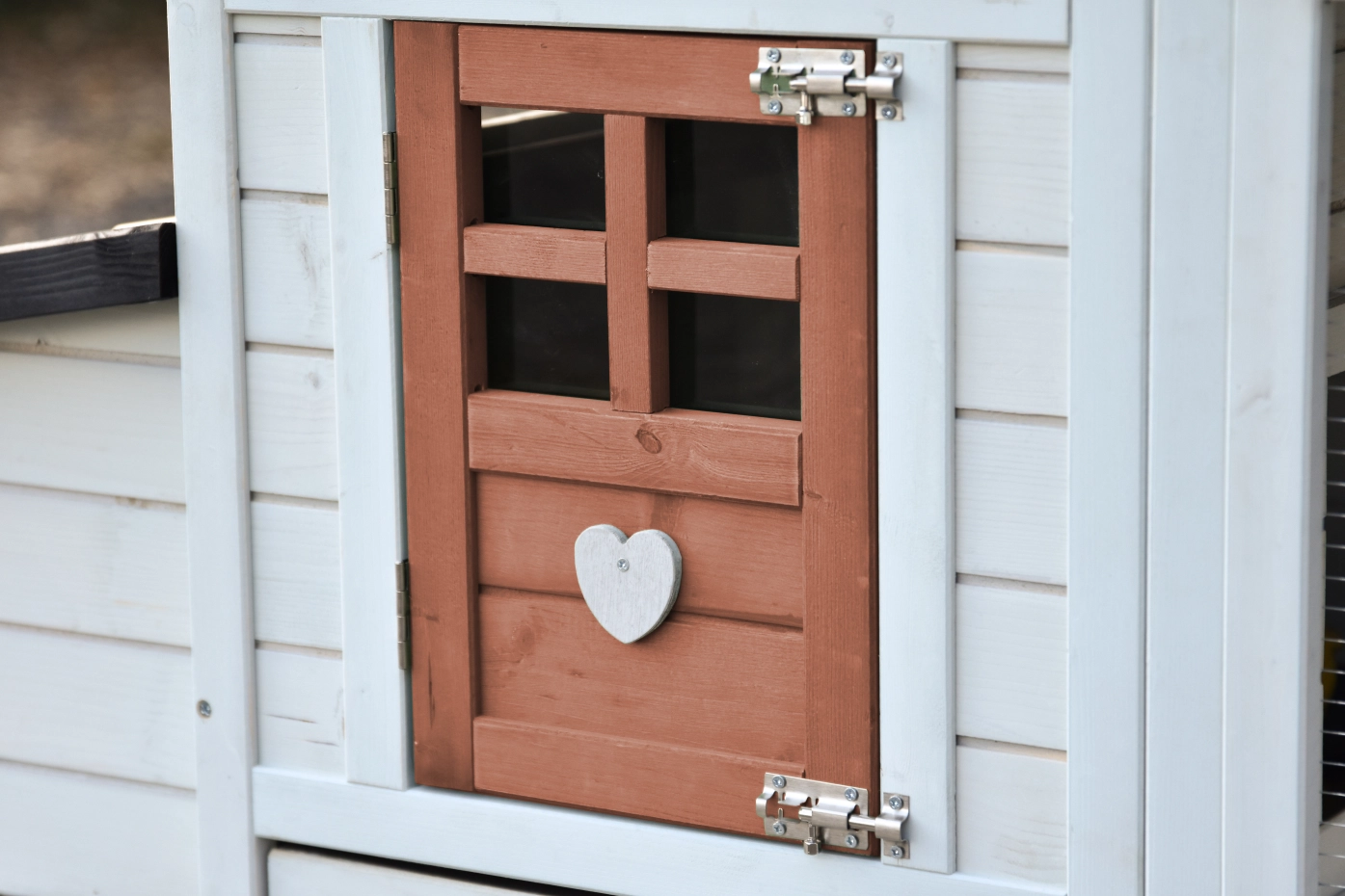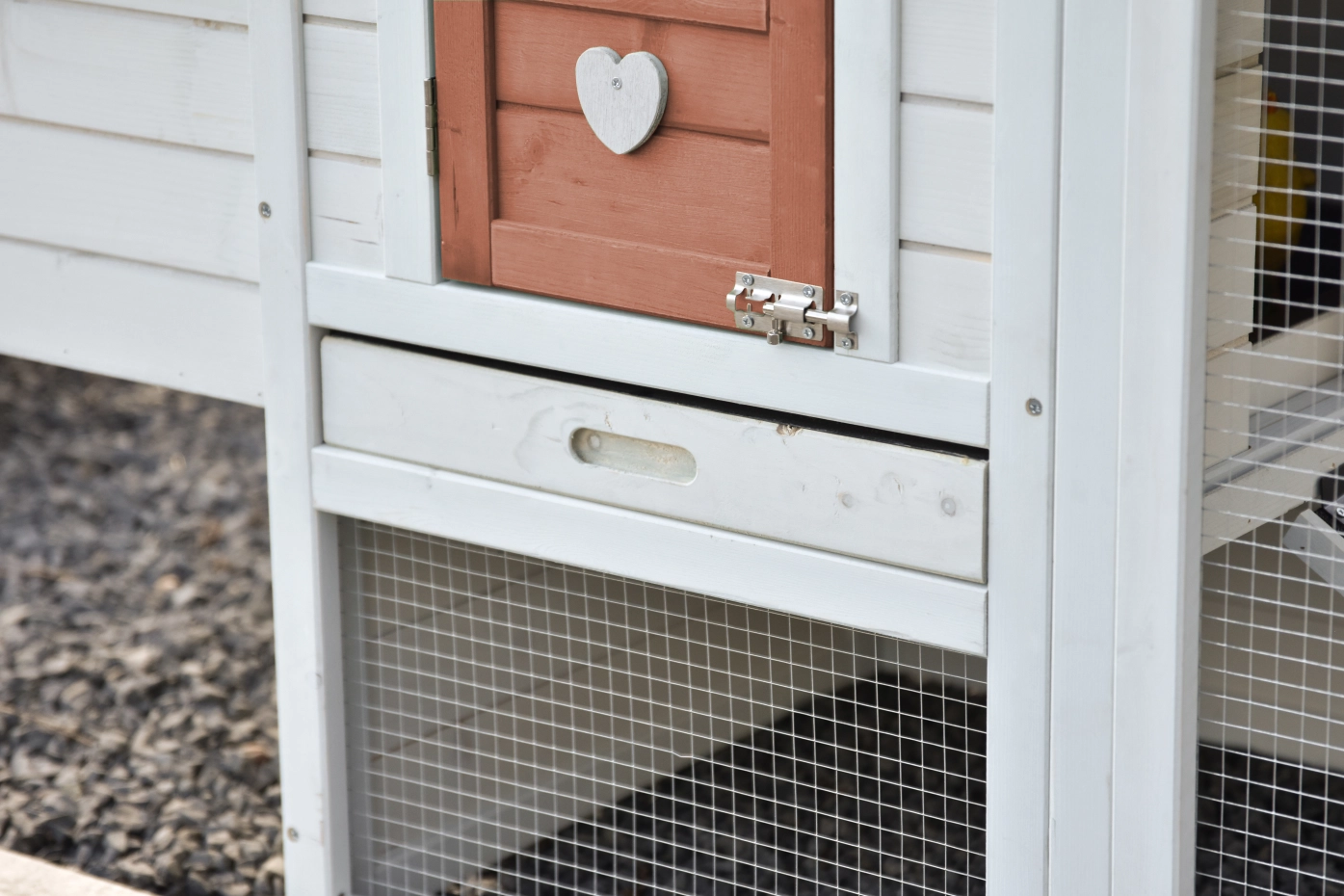 - Wanneer het hok niet op een beschutte plaats staat, dan adviseren wij om het te verankeren