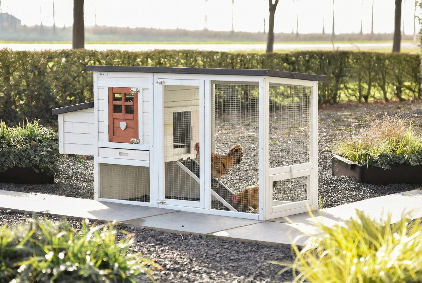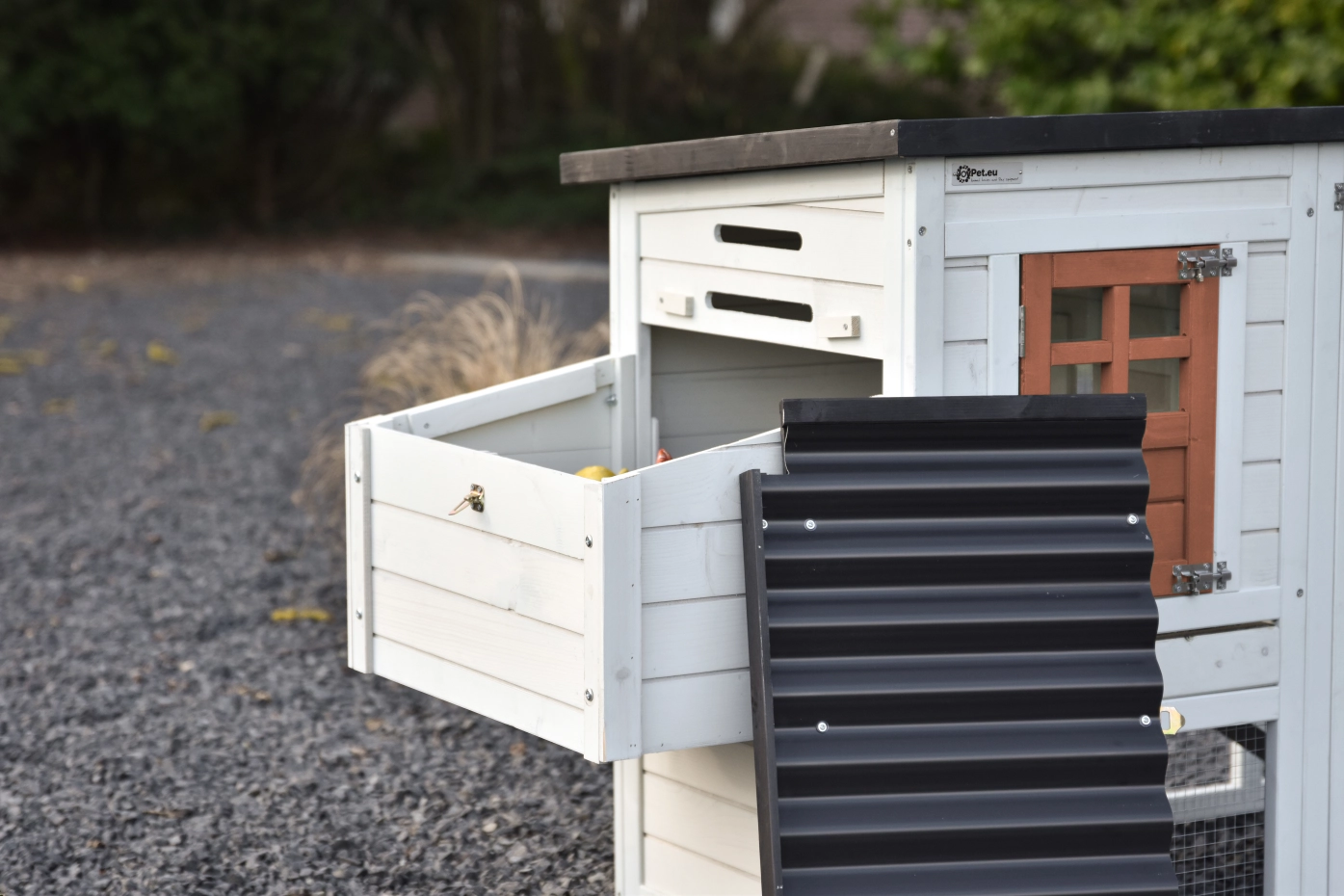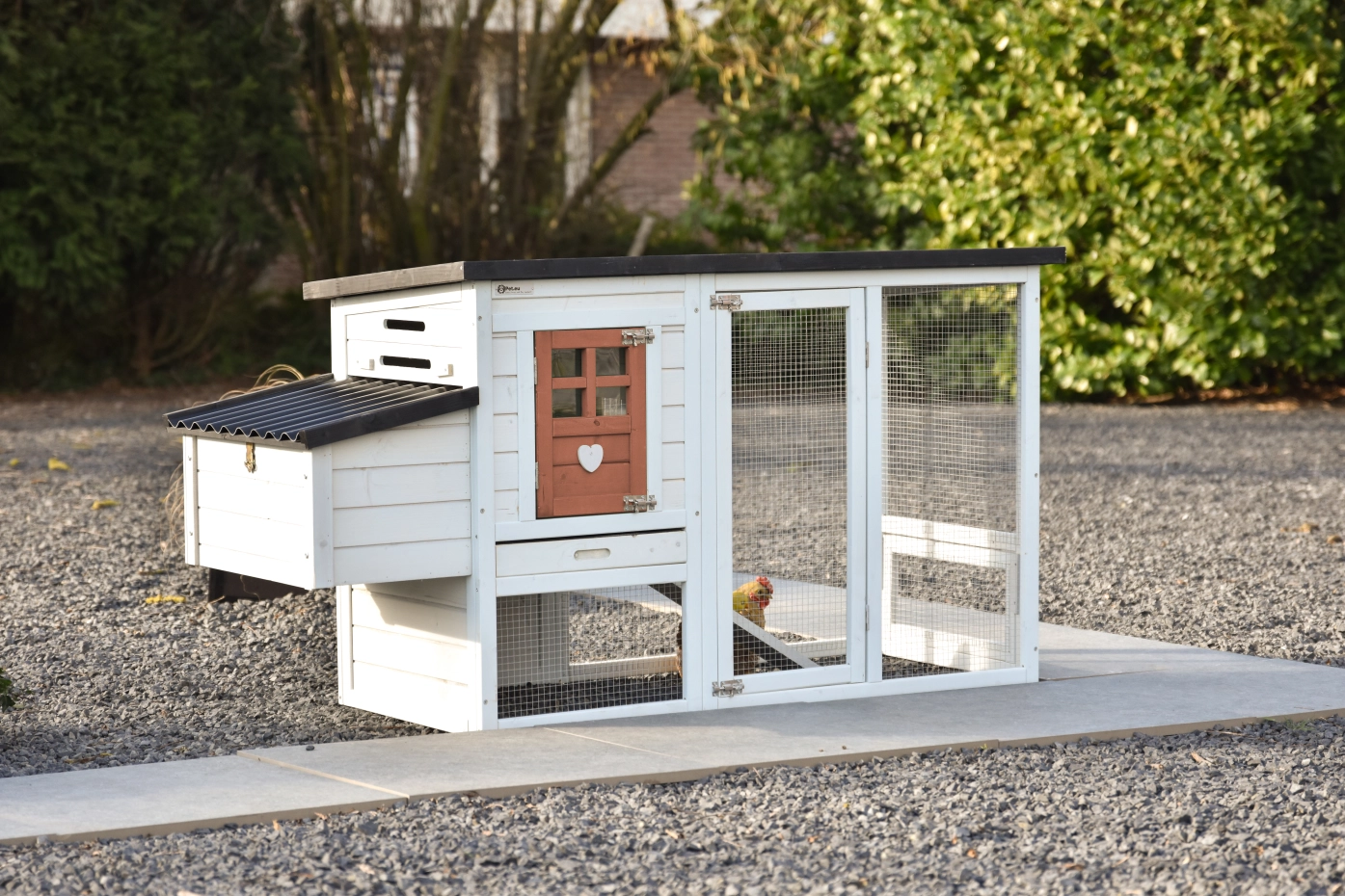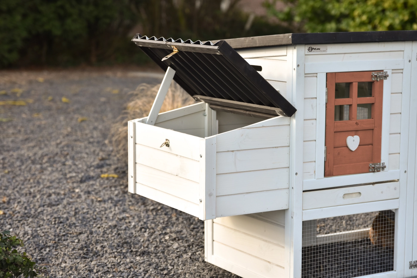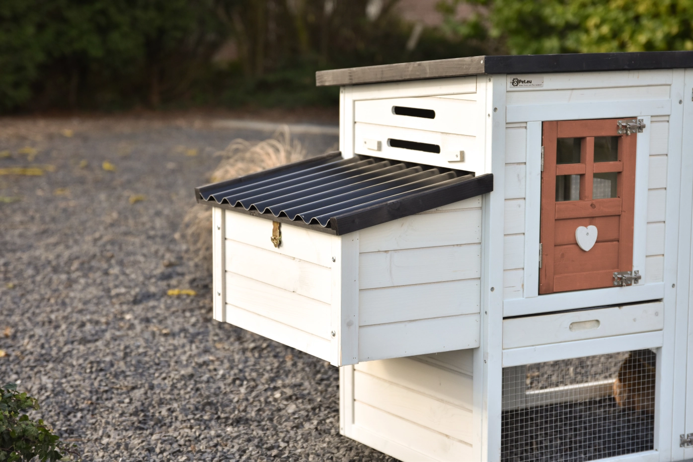 - Het hok is voorzien van een kunststof dak