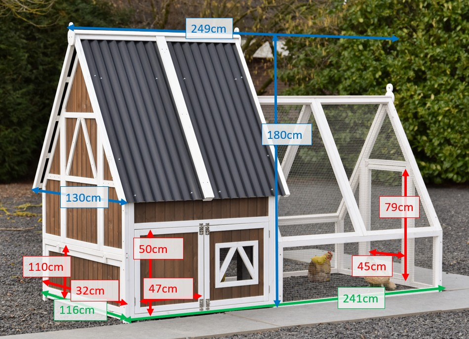 Kippenhok Pip met aanbouwren is een groot en comfortabel kippenhok met een klassiek puntdak, geschikt voor het houden van 10 tot 20 kippen. De aanbouwren geeft de kippen extra loopruimte, zodat zij overdag meer bewegingsvrijheid hebben en veilig kunnen scharrelen. Zo ontstaat er een mooie combinatie van een ruim nachthok en een praktische buitenruimte.