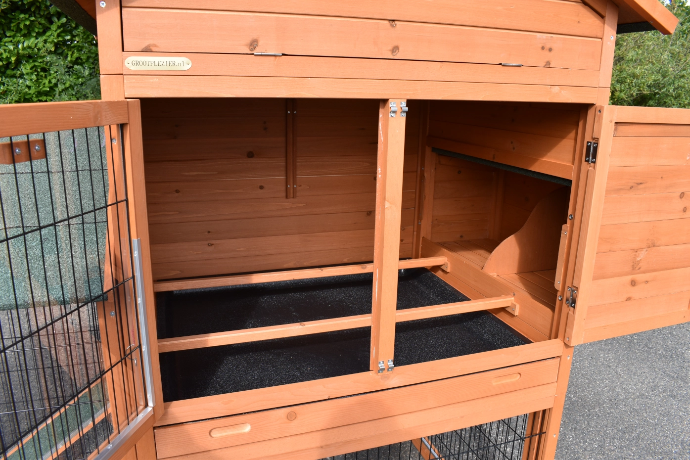 • Dit dierenhok is gemaakt van mooi dennenhout