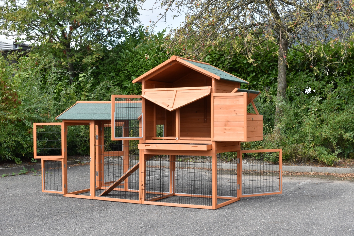 • Dit kippenhok is voorzien van een legnest