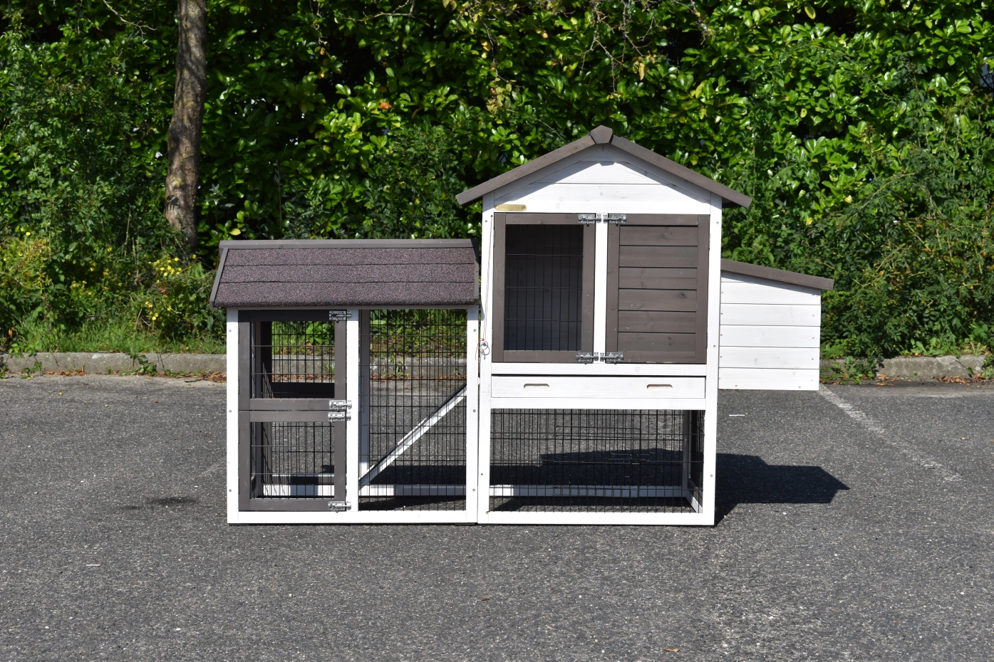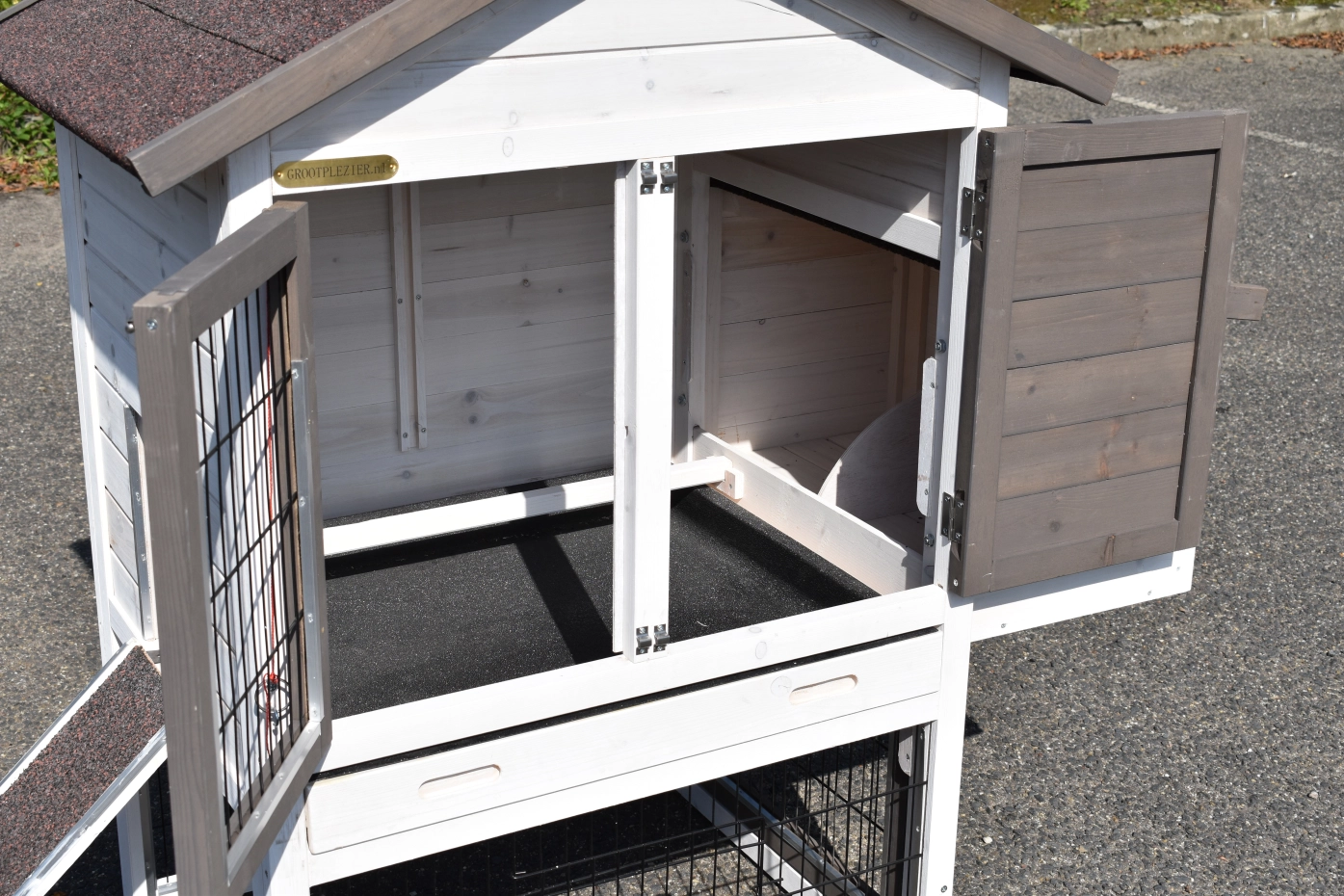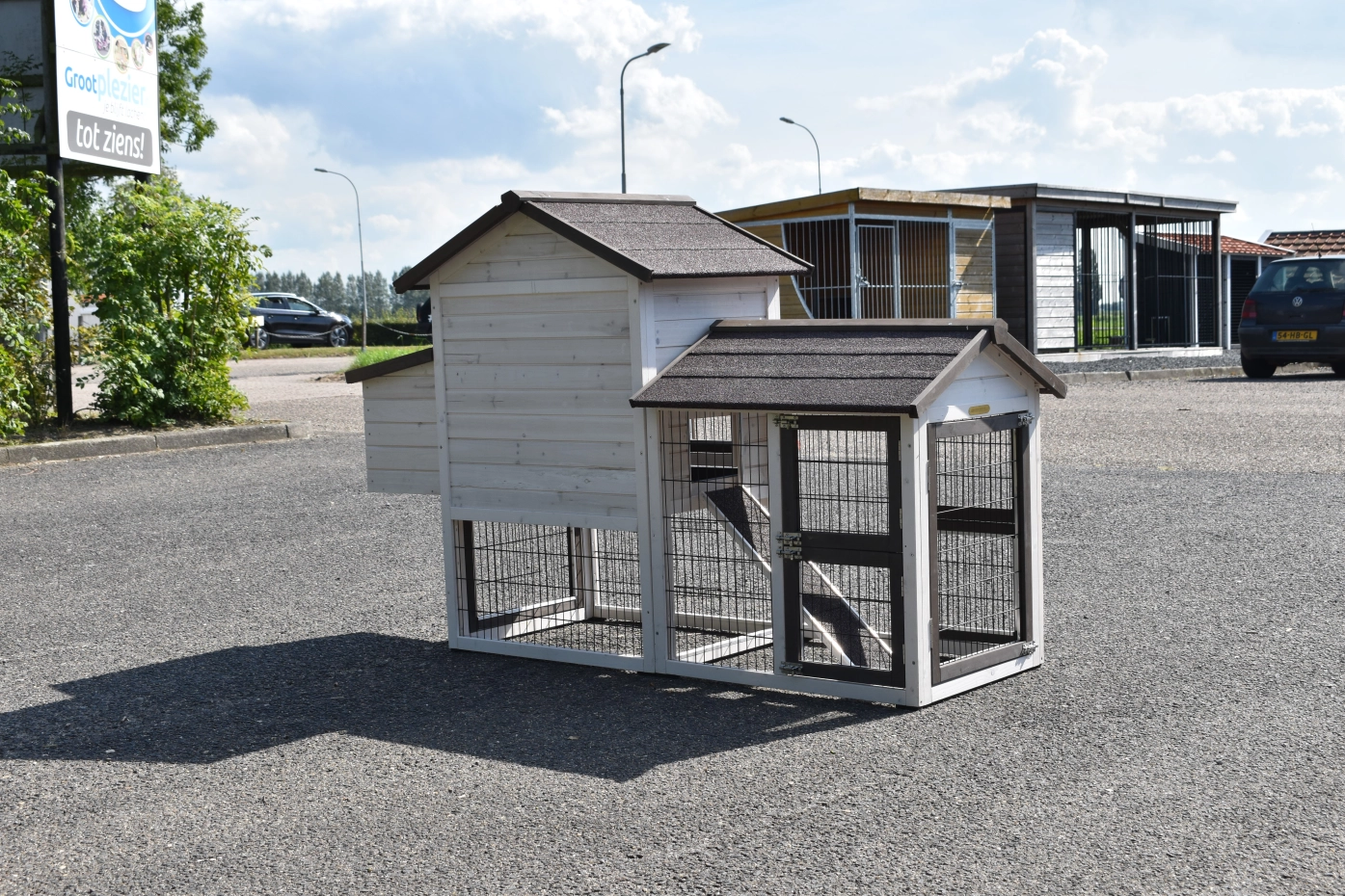 - Dit dierenhok is gemaakt van mooi dennenhout