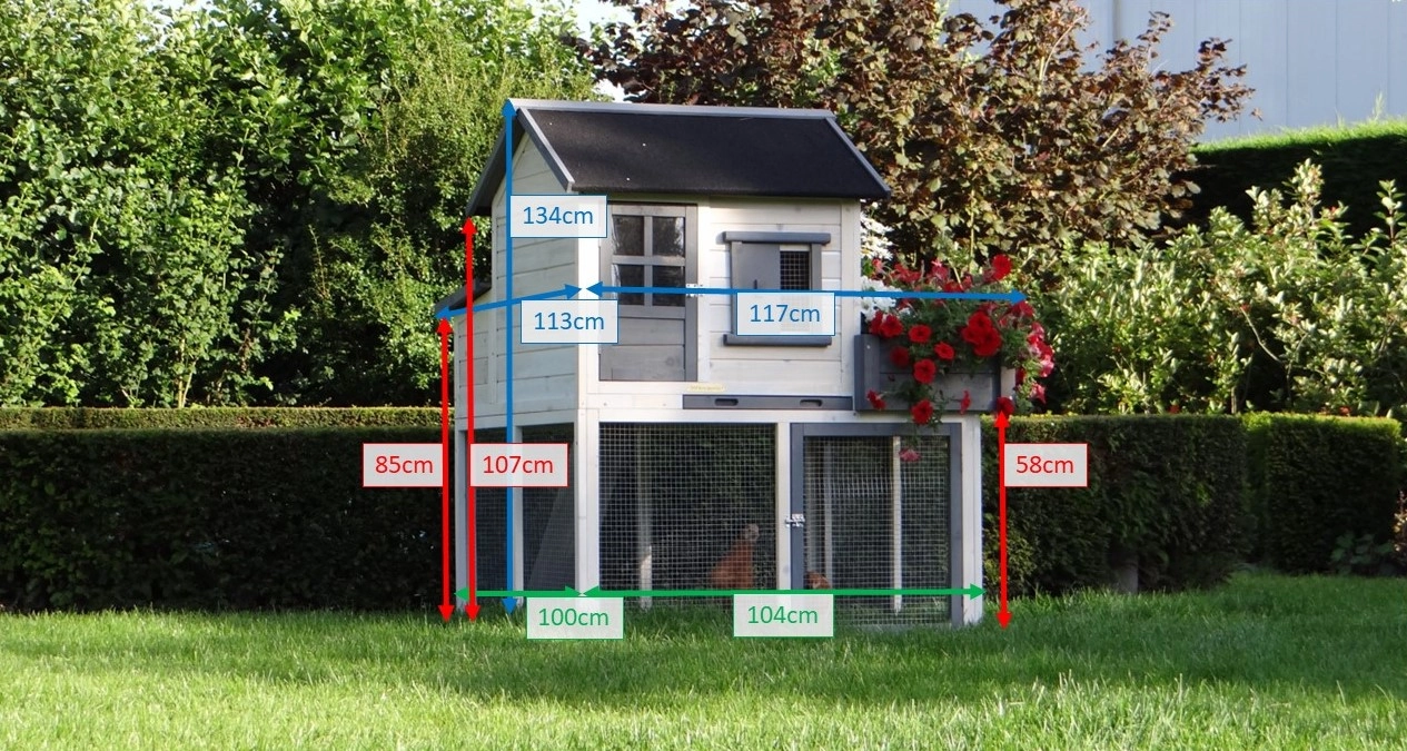 | Buitenwerkse afmetingen incl. dak en nestkast (BxDxH) | 116x112x134cm |