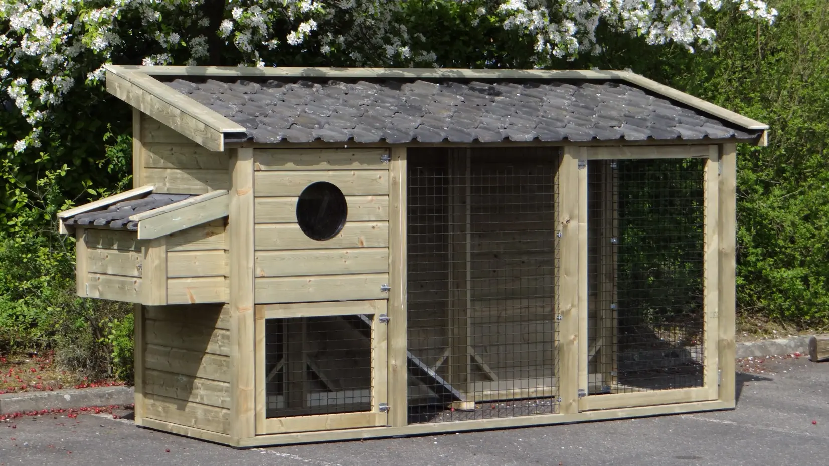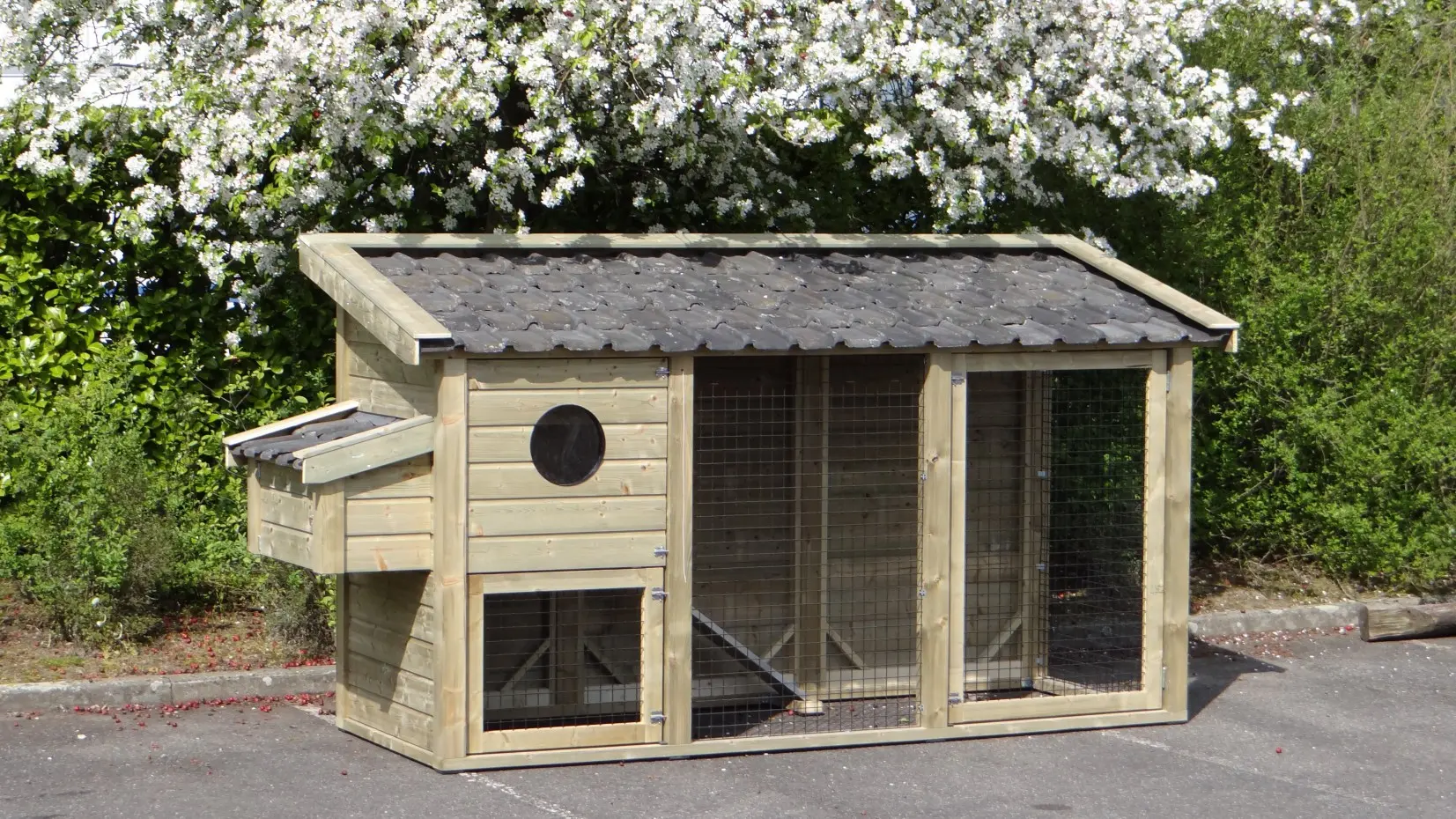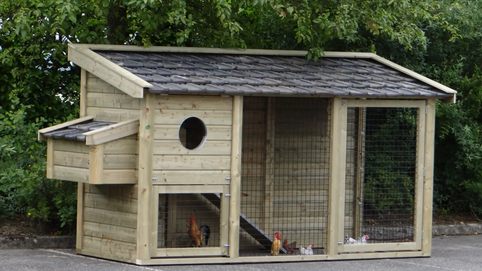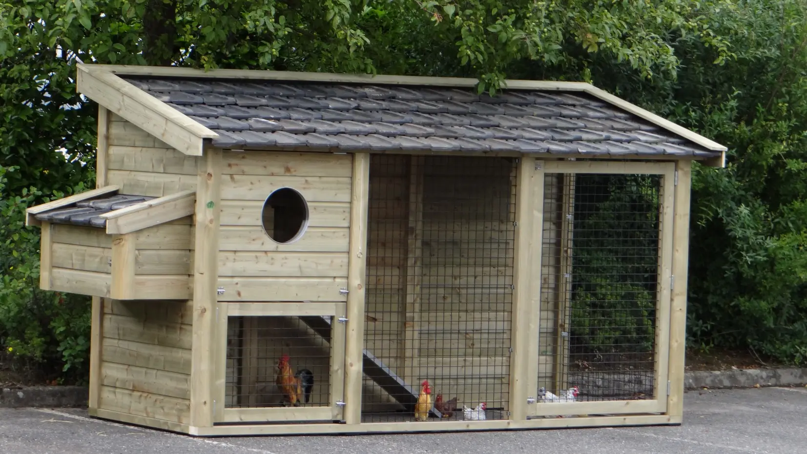 Kippenhok Supreme doet zijn naam eer aan. Een kippenhok van superieure kwaliteit, met een prima afwerking. Nederlands fabricaat van geïmpregneerd hout, met echte keramische dakpannen, en ijzersterke gaasmatten.