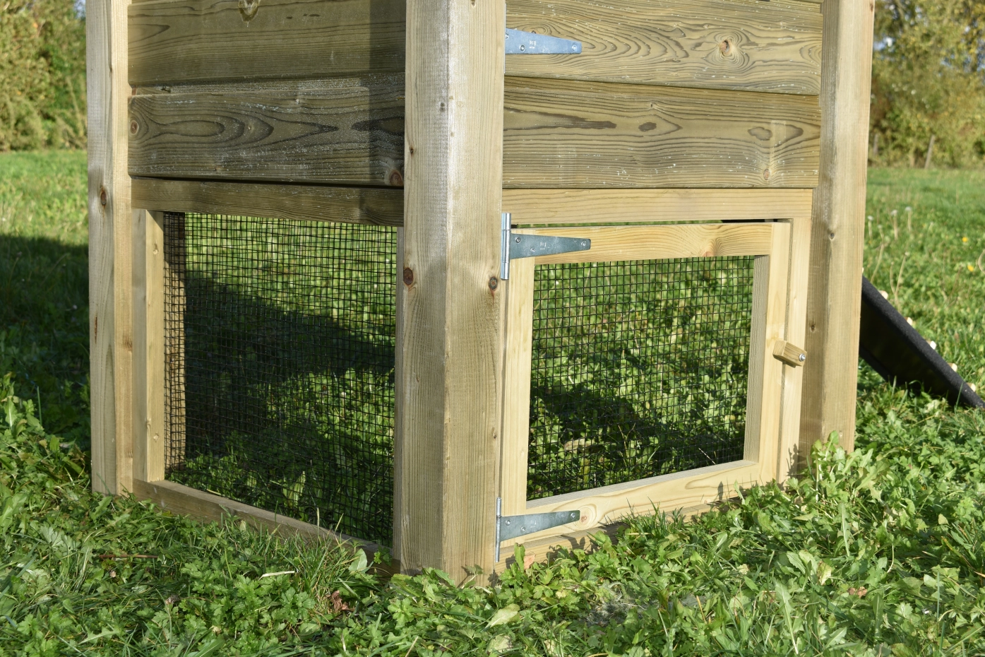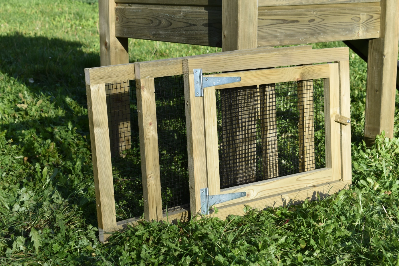 Gaas set voor de hooiberg Rosa. 3 panelen van 67x50cm, waarvan 1 met deur. Deze kunt u later bestellen en monteren in de hooiberg Rosa, Rosy, Rosanne en Rosalynn. Wanneer u een ren aan wilt bouwen, hebt u deze set nodig om de ren dicht te maken.