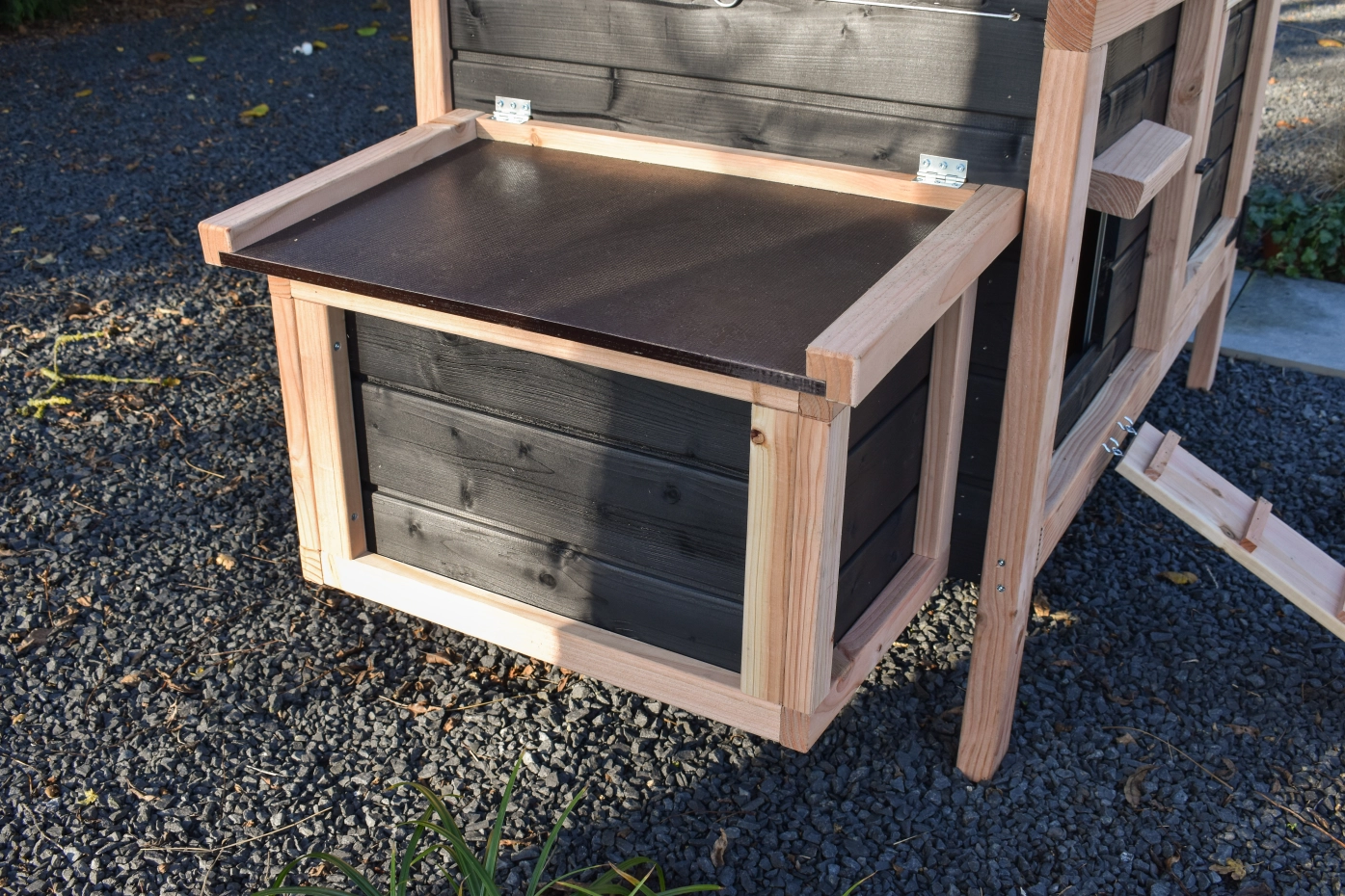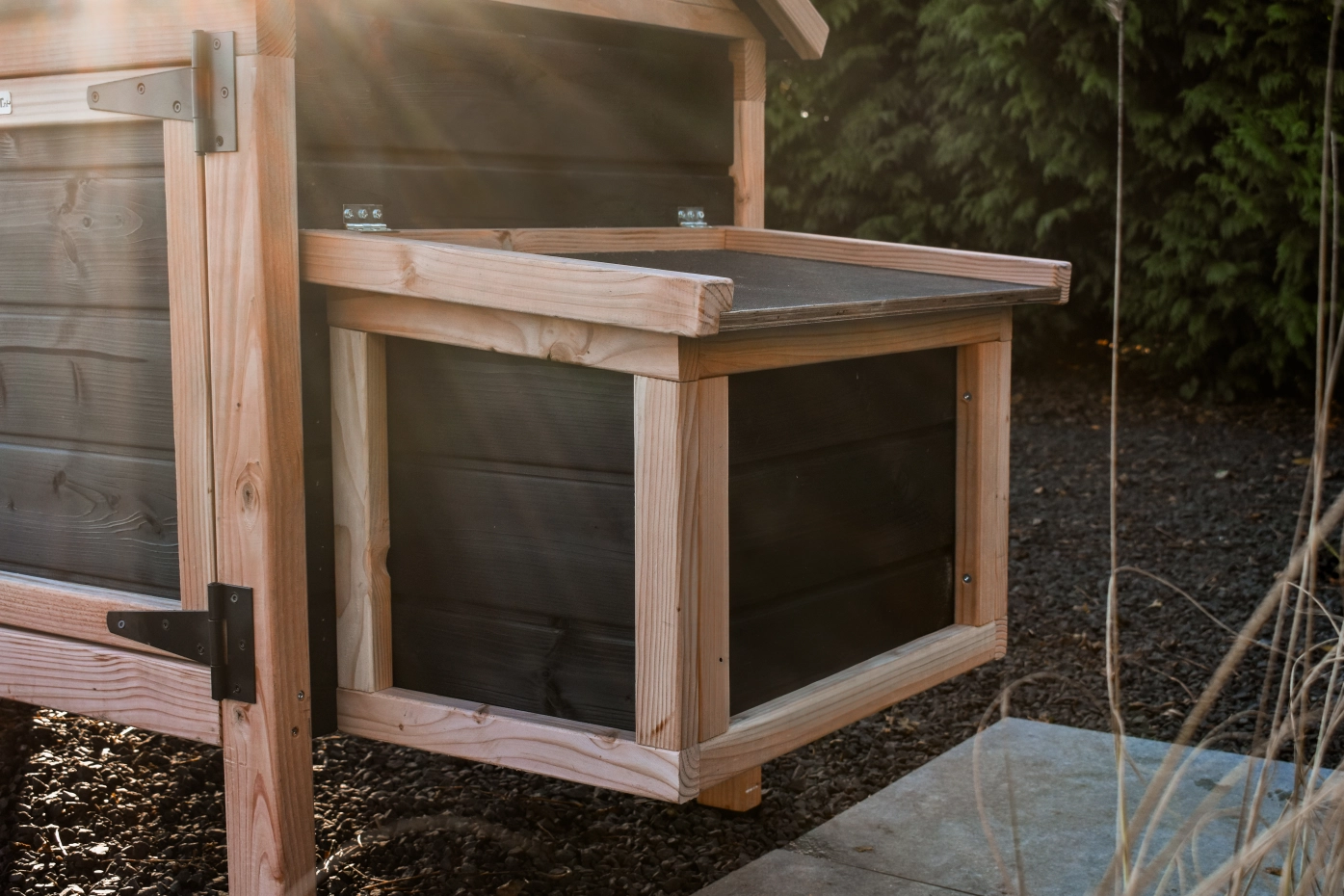 Legnest Eggy is los te bestellen en eenvoudig aan uw Kippenhok Eggy te bevestigen. Geniet van verse eitjes bij het ontbijt! Geen Eggy in uw tuin? Bekijk de complete sets met chic Douglashout en zwarte accenten.