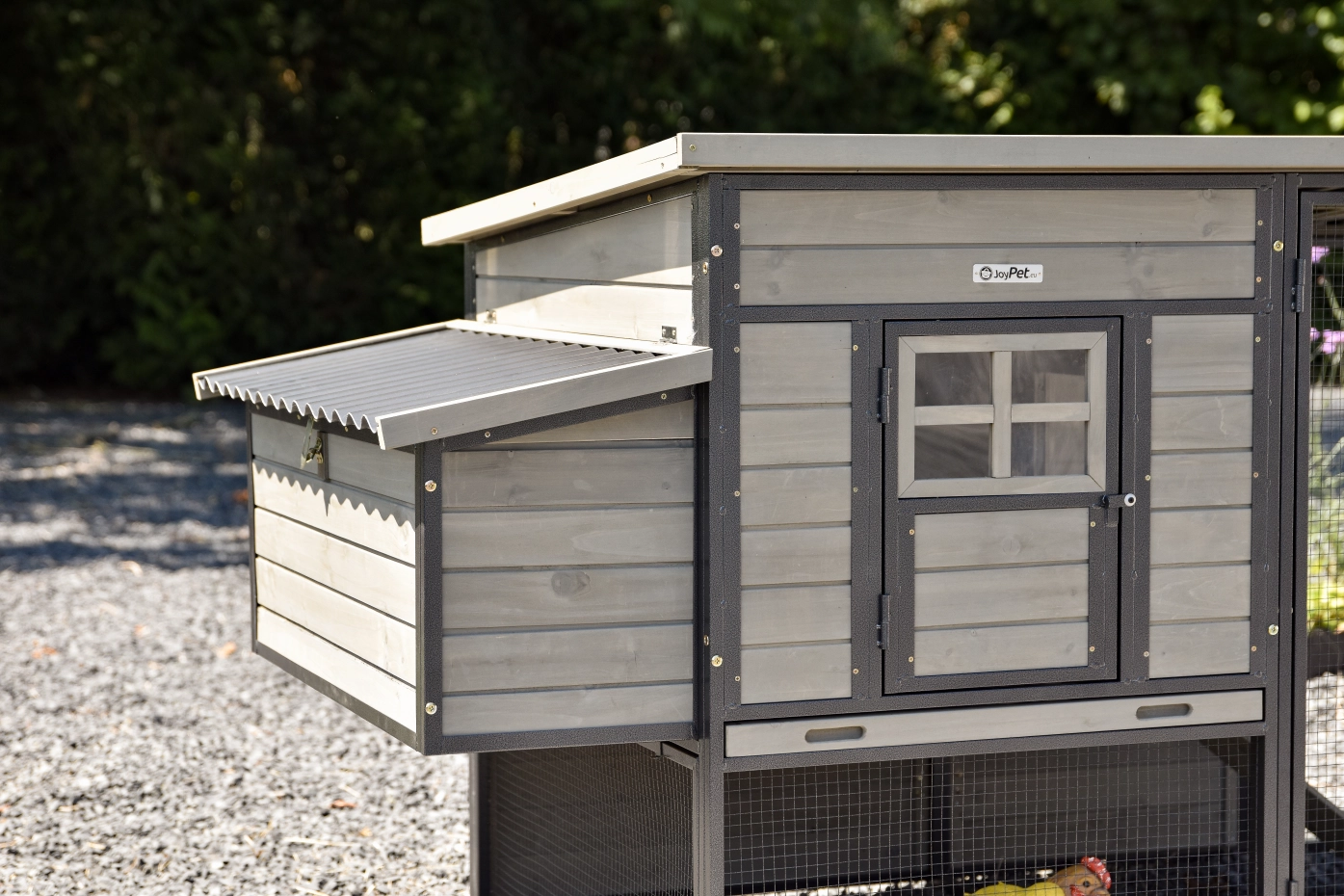 Legnest Judy is los te bestellen en eenvoudig aan uw Kippenhok Judy te bevestigen. Geniet van verse eitjes bij het ontbijt! Geen Judy in uw tuin? Bekijk de complete sets in de mooie grijze kleur!