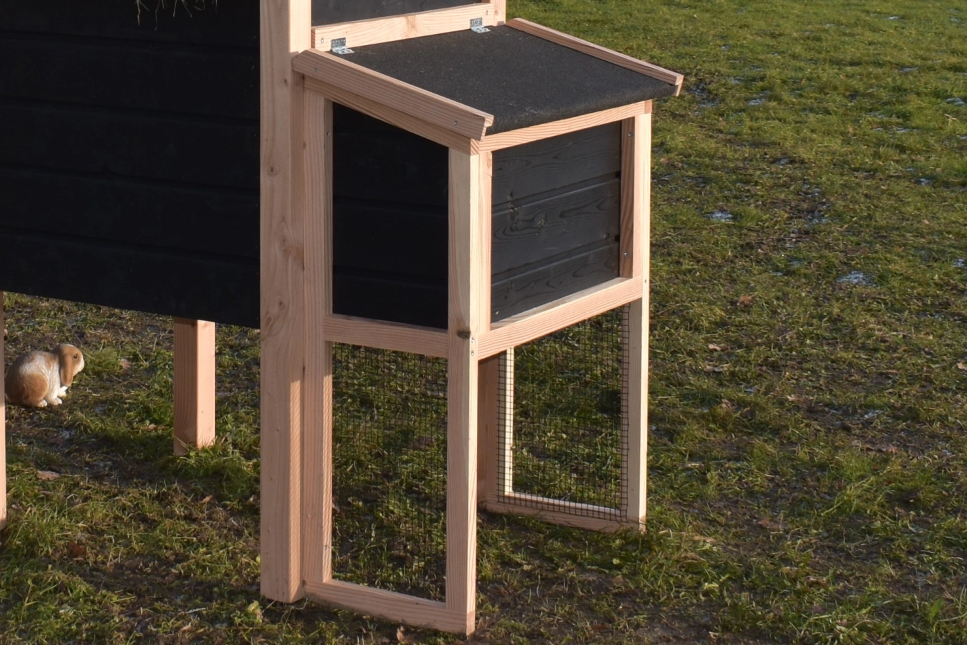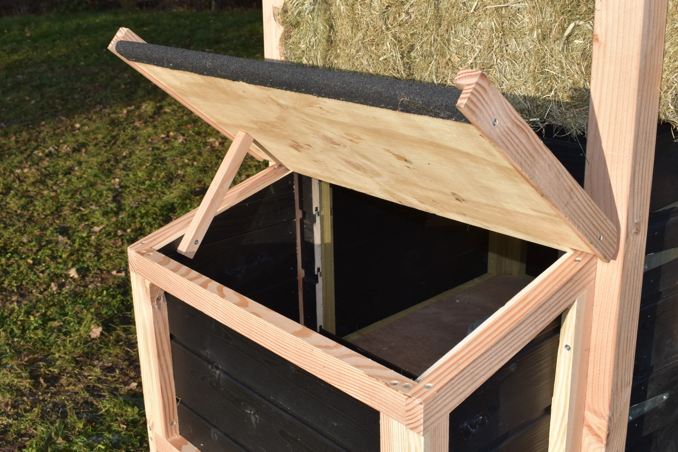 Legnest Rosa is een aanbouw element voor de hooiberg Rosa. Hebt u een Hooiberg Rosa gekocht en mist u de ruimte waar uw kippen hun ei kwijt kunnen? Dit legnest is de oplossing! Deze kunt u gemakkelijk tegen de palen van de hooiberg monteren.