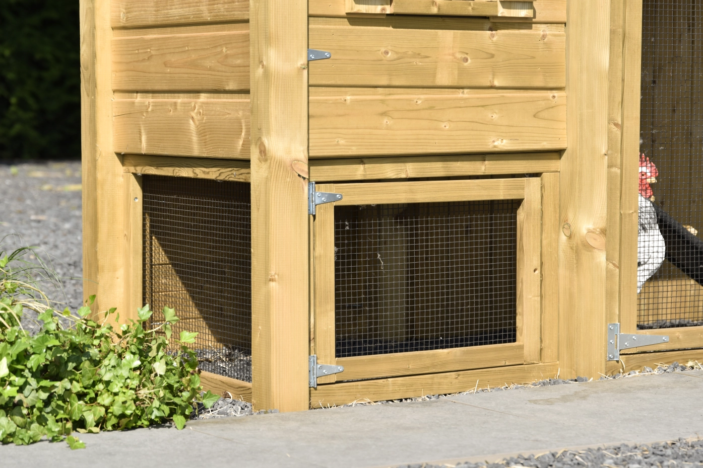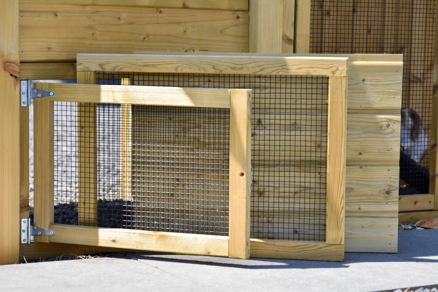 Panelen set voor de hooiberg Rosa. 3 panelen van 67x50cm, waarvan 1 met deur en 1 met hout. Deze kunt u later bestellen en monteren in de hooiberg Rosa, Rosy, Rosanne en Rosalynn. Wanneer u een ren aan wilt bouwen, hebt u deze set nodig om de ren dicht te maken.