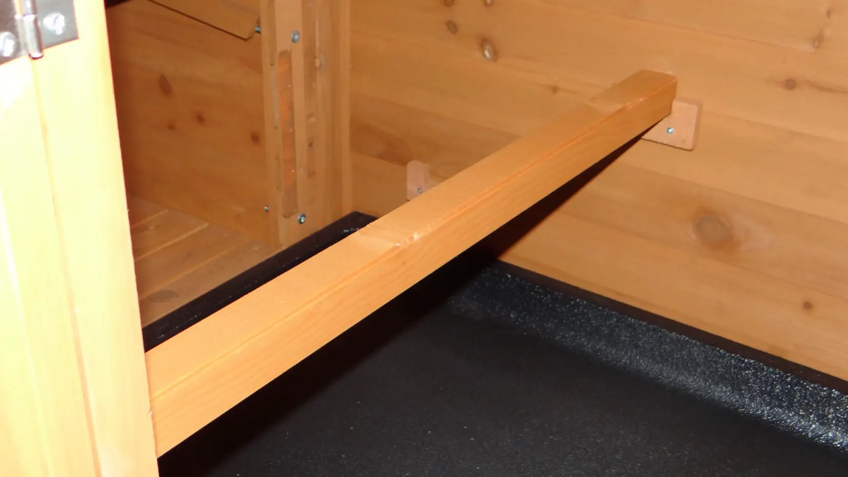 Kippenzitstok met houders. Deze zitstok kan los in het nachthok bevestigd worden. De zitstok kunt u desgewenst eenvoudig inkorten. De zitstok is uitermate geschikt om extra plaatsen te creëren in het nachthok. De zitstok heeft een afmeting van 98x3,5x3,5cm.