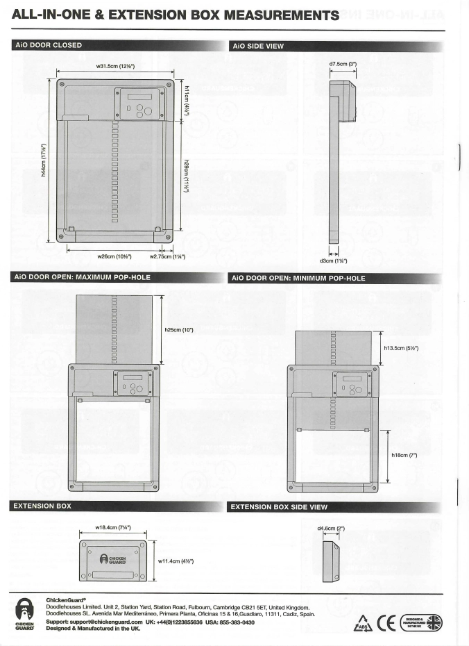Chickenguard all-in-one is een compleet geheel om de deur van het kippenhok automatisch te openen. Deze all-in-one kippendeur opener bestaat uit een bedieningspaneel uitgerust met programmeerbare timer en instelbare lichtsensor en een aluminium deur. Het installeren van ChickenGuard all-in-one is heel gemakkelijk. Wordt geleverd incl. bevestigingsmateriaal.