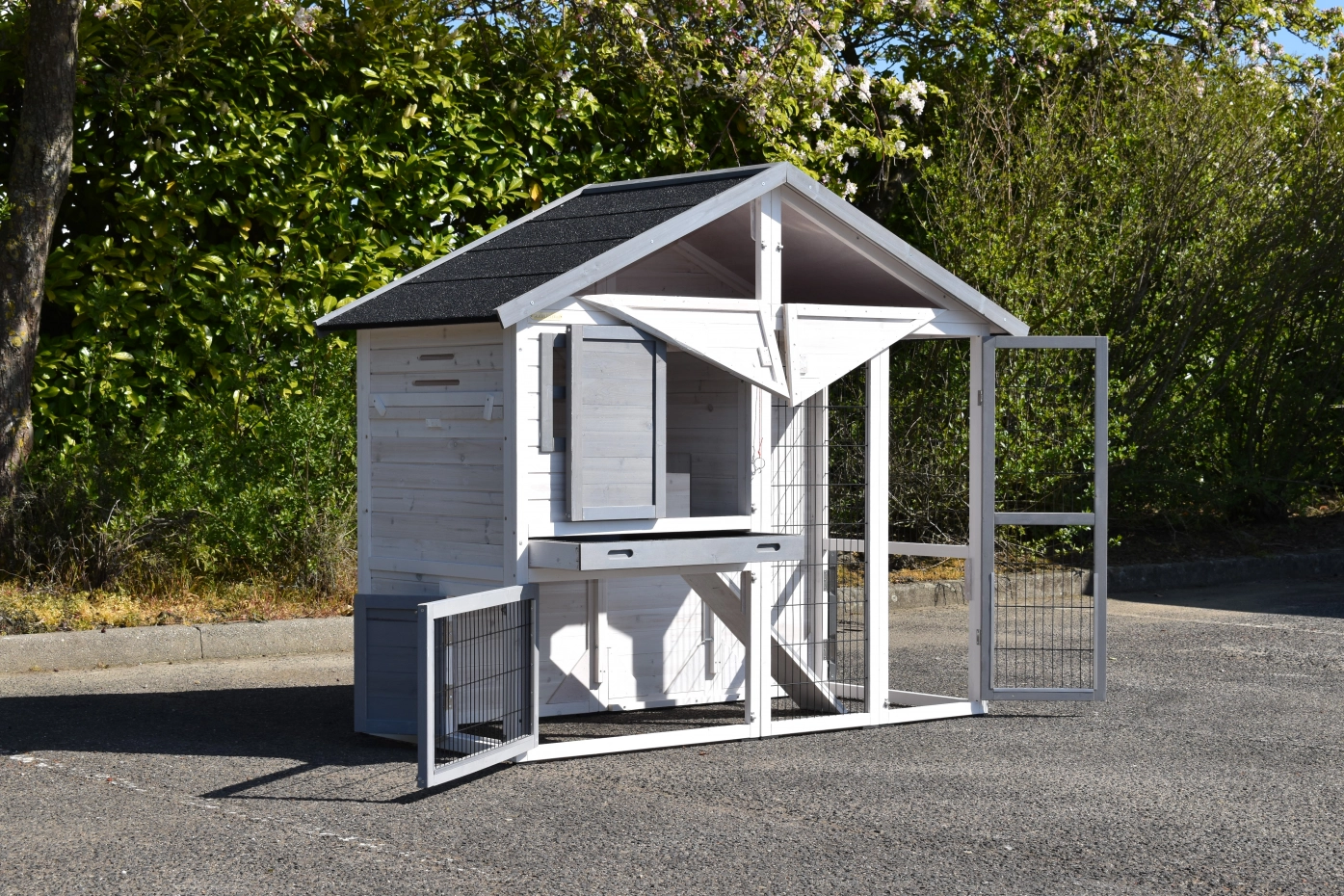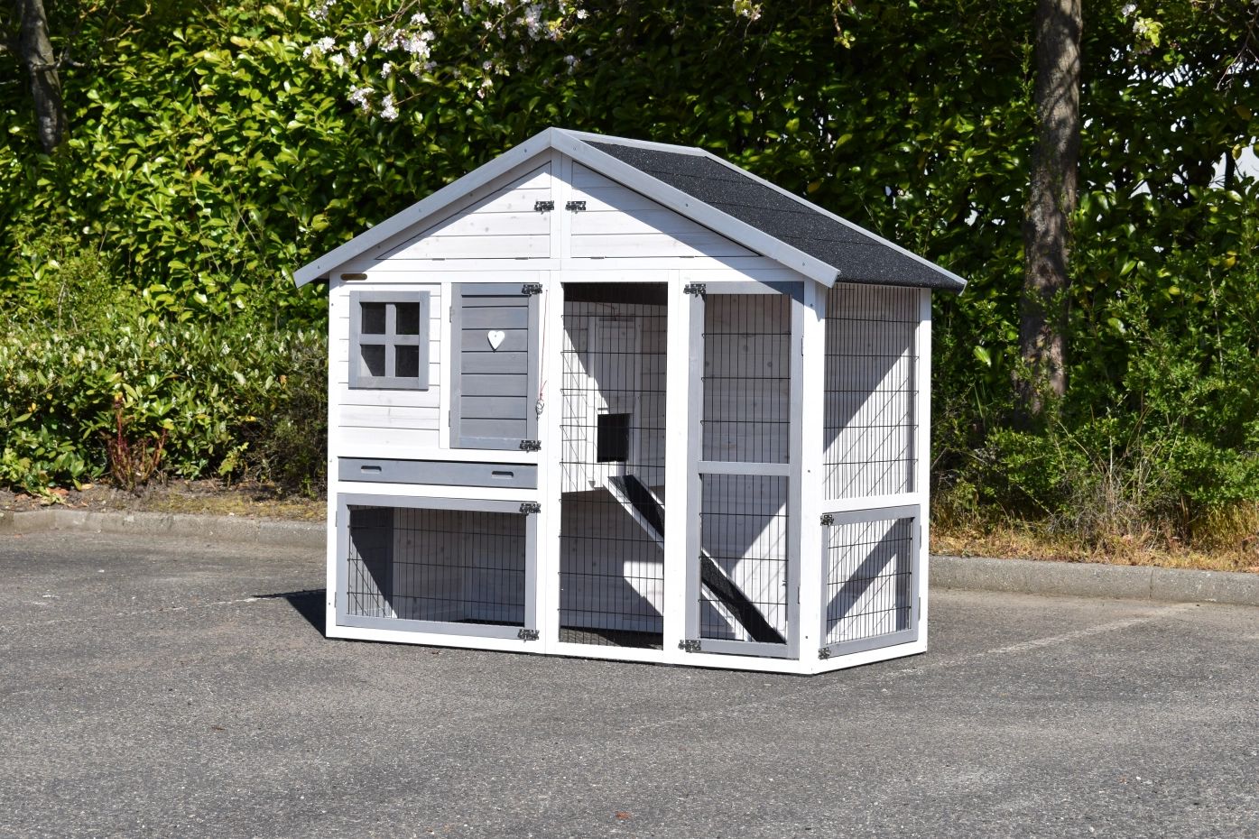 - Dit dierenhok is gemaakt van mooi dennenhout