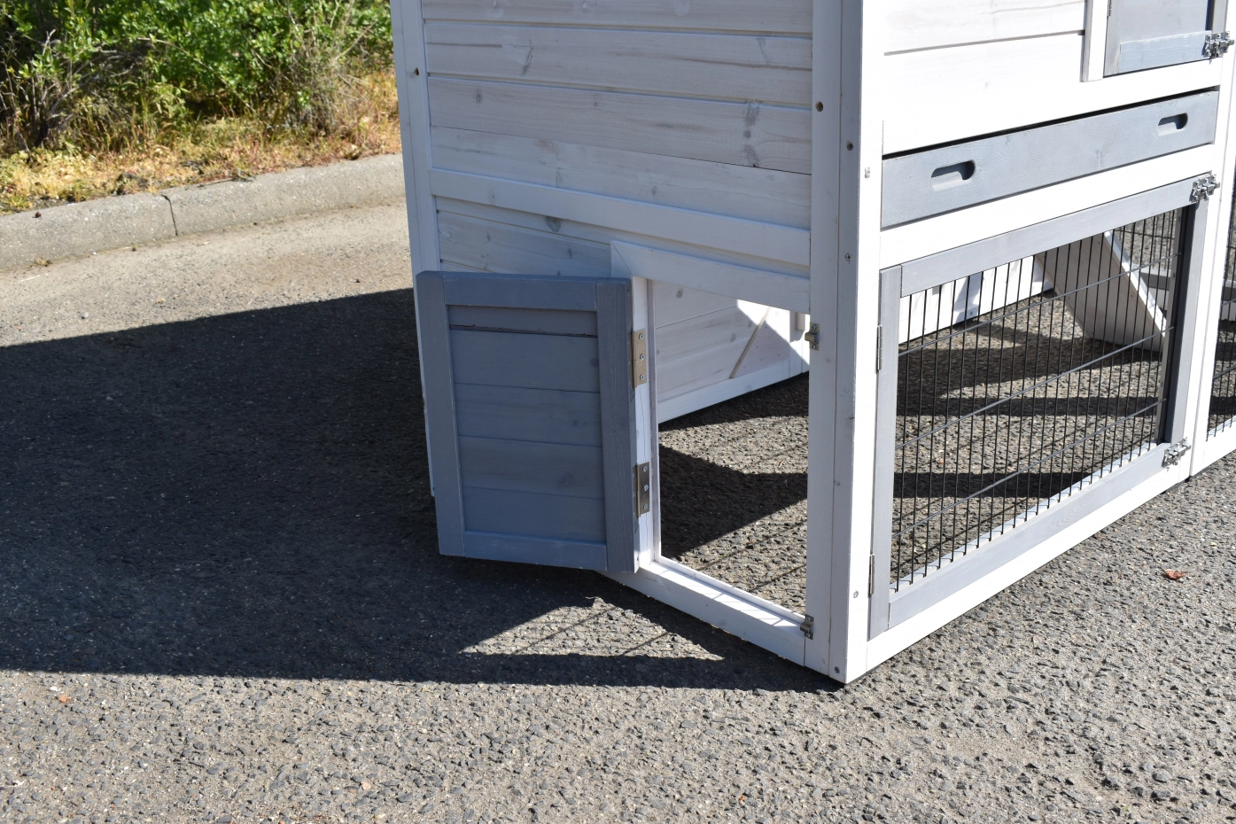 - Wanneer het hok niet op een beschutte plaats staat, dan adviseren wij om het te verankeren