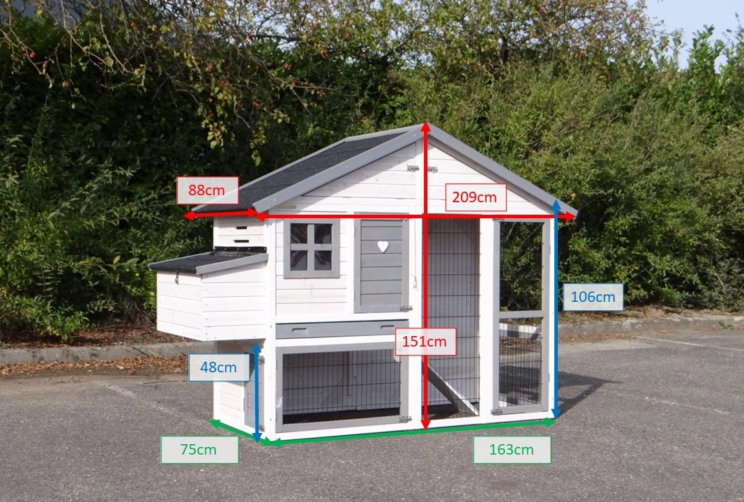 | Buitenwerkse afmetingen incl. dak en nestkast (BxDxH) | 209x88x151cm |