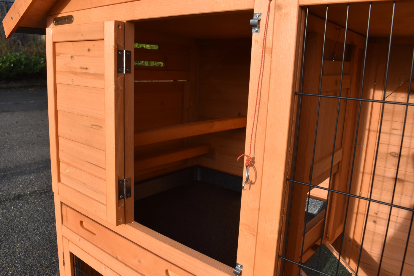 - Dit dierenhok is gemaakt van mooi dennenhout