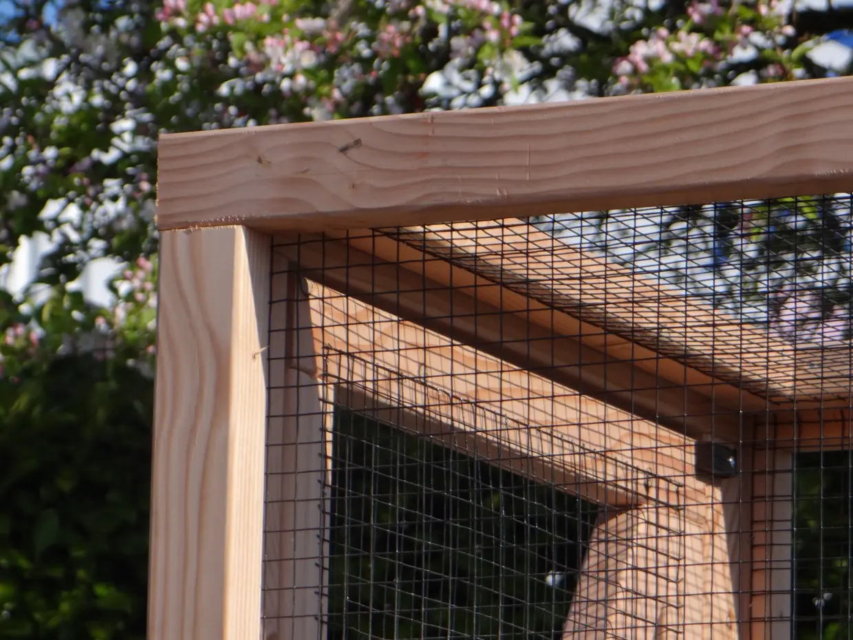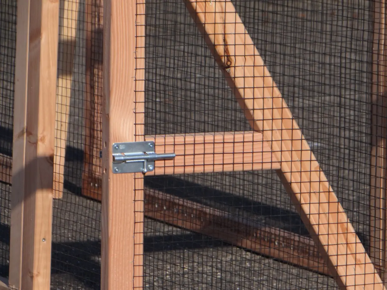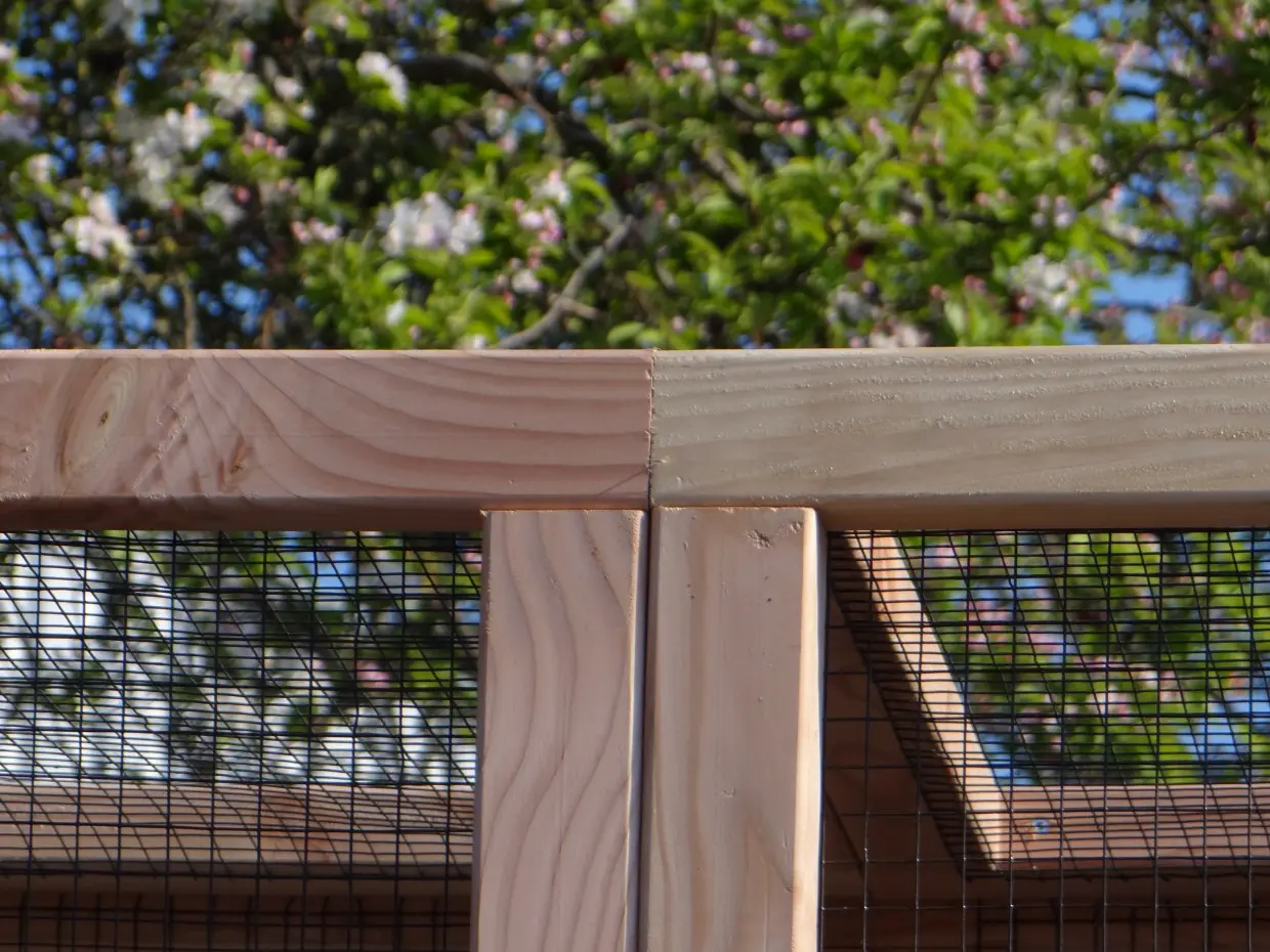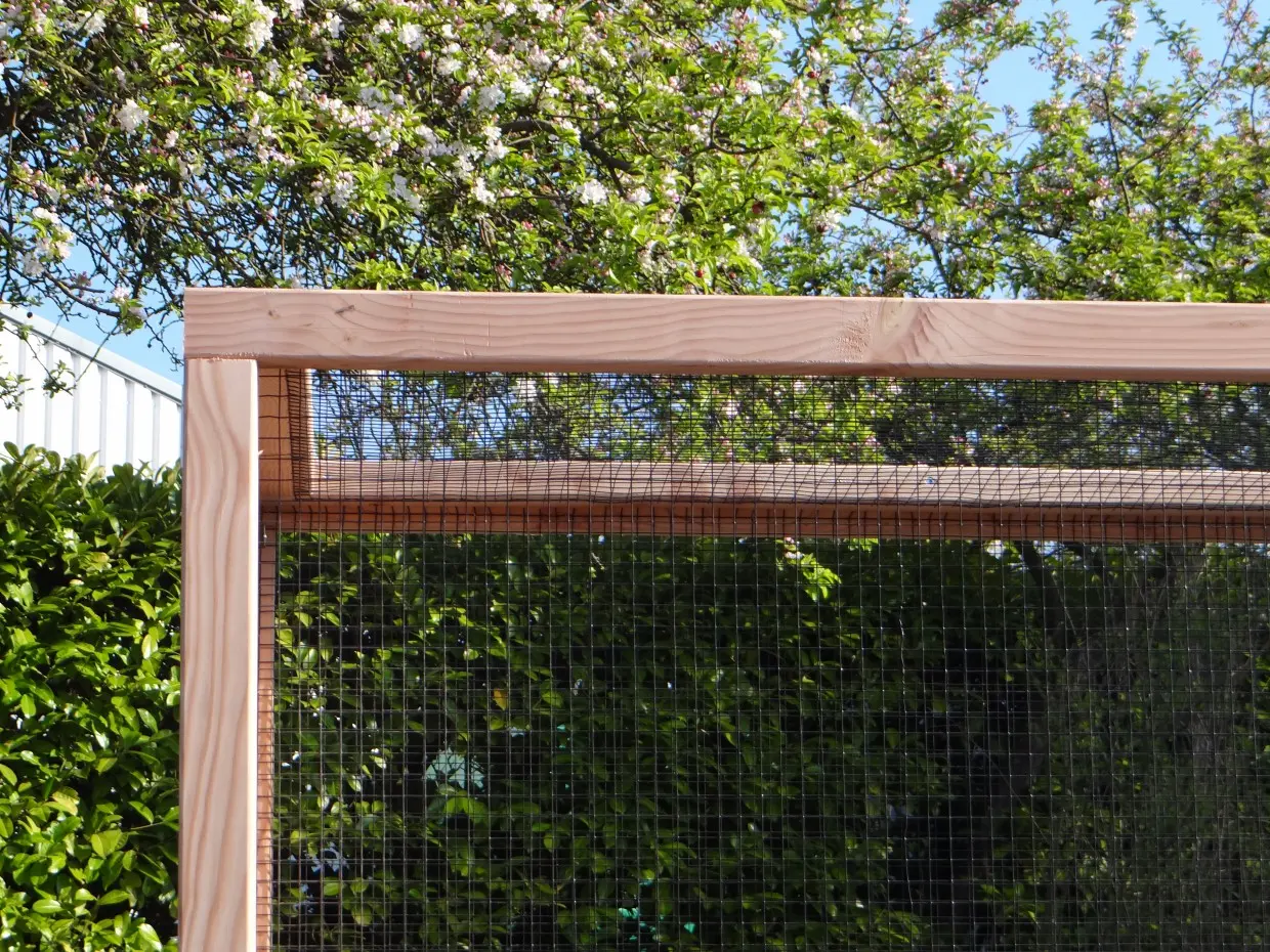 Deze grote dierenren is ideaal om kippen, konijnen of katten in te houden. De ren is gemaakt van douglashouten frames met daarin zwart gaas. De ren heeft een oppervlakte van ca. 7m². Deze dierenren is prima geschikt om te combineren met konijnen-/kippenhok Hooiberg Hielke.