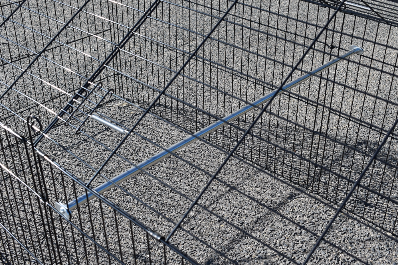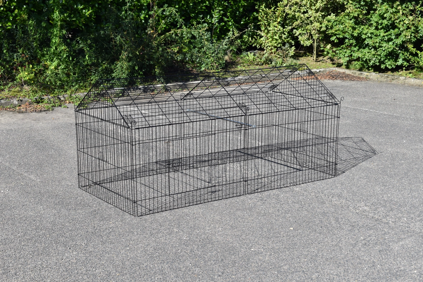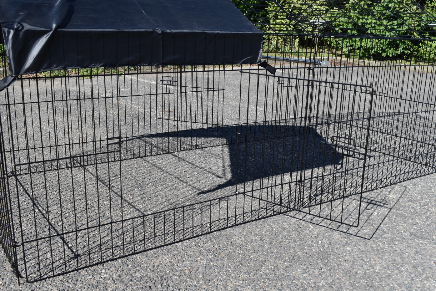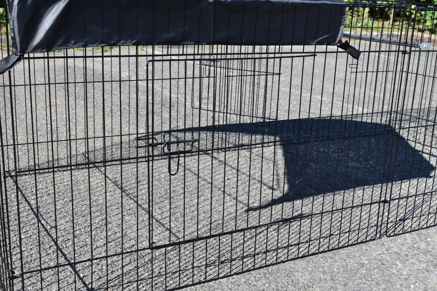 zwarte draadkooi, met zonnescherm