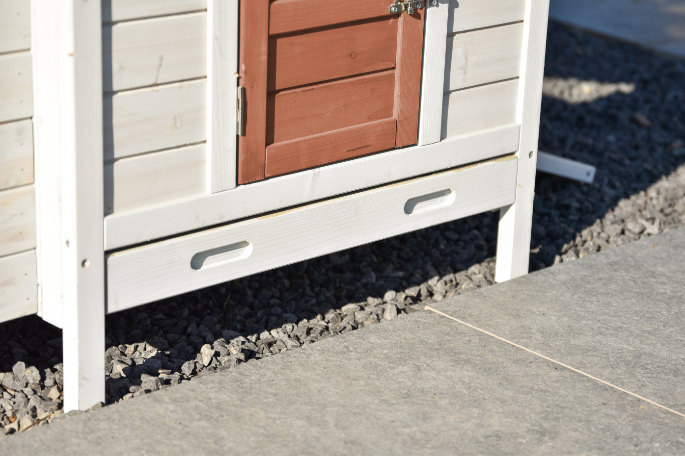 - Wanneer het hok niet op een beschutte plaats staat, dan adviseren wij om het te verankeren