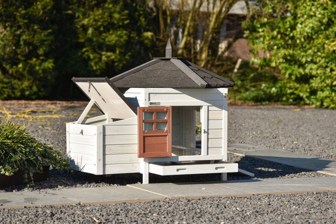 - Het hok is voorzien van een afneembaar dak