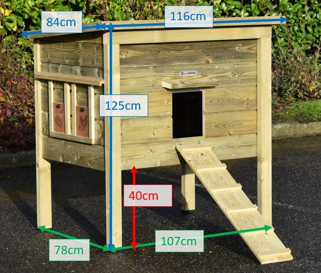 | Buitenwerkse afmetingen incl. dak en nestkast (BxDxH) | 116x84x125cm |