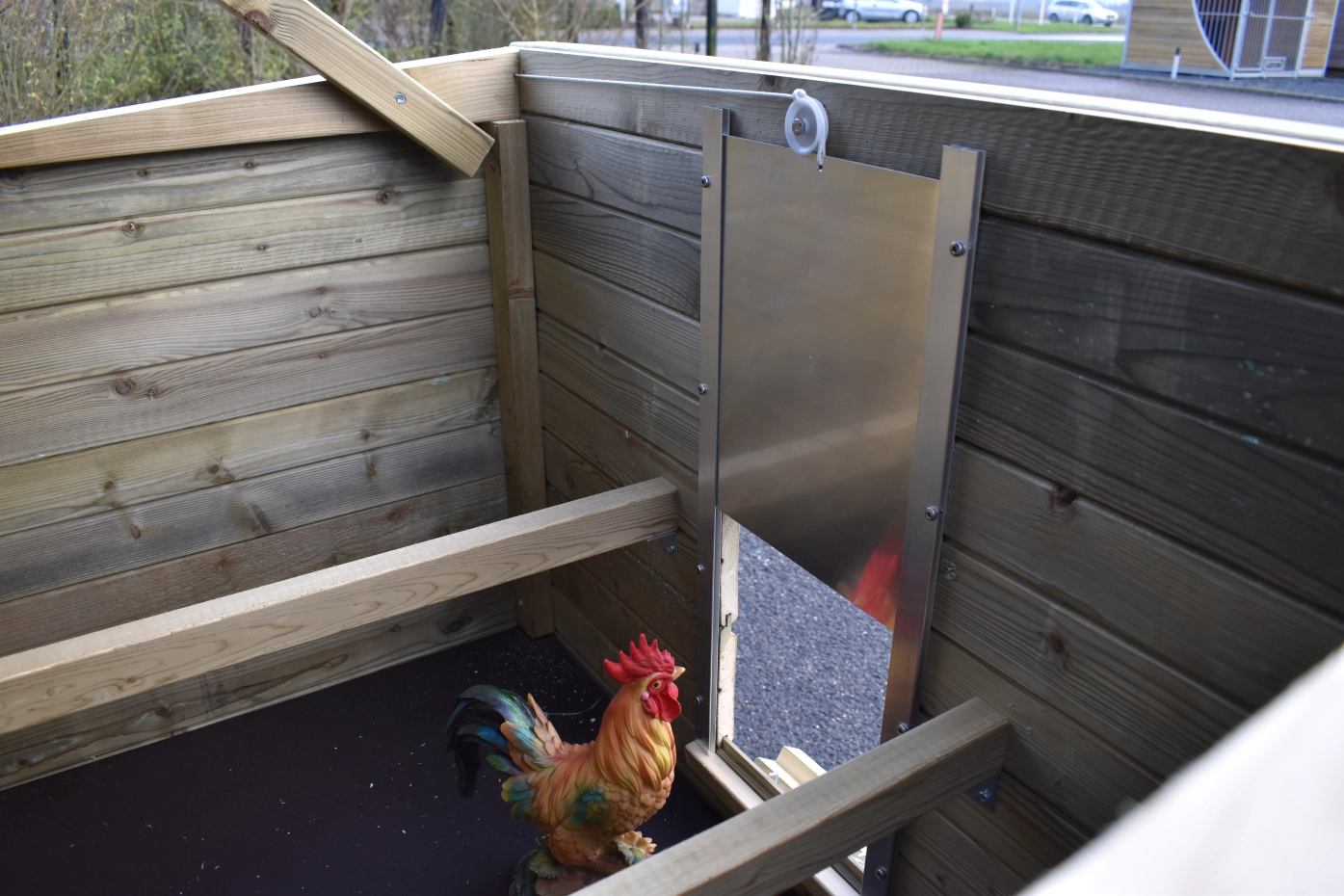 - Afsluitbaar nachthok: voorzien van aluminium schuifluik aan de binnenzijde