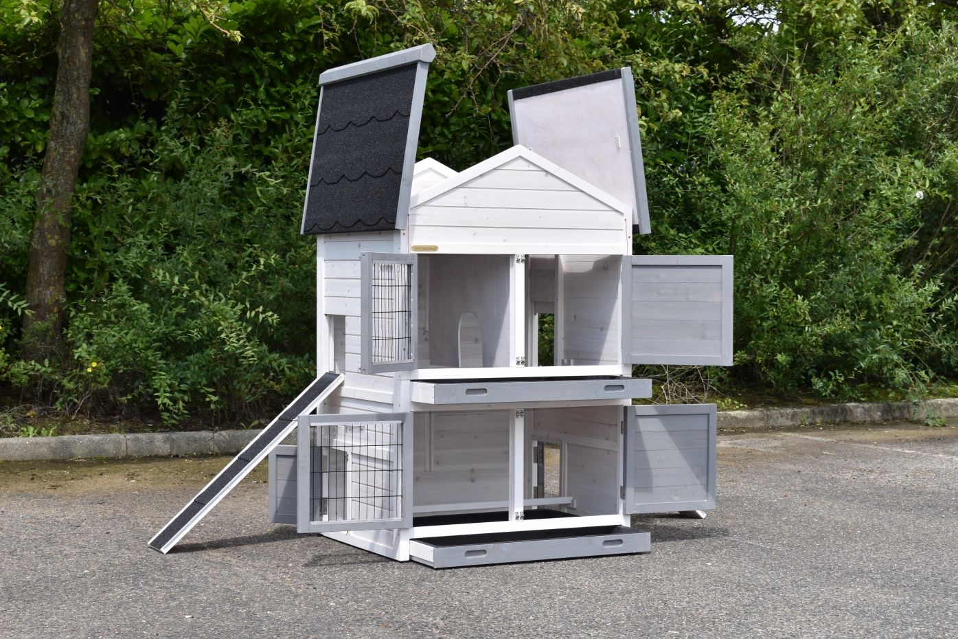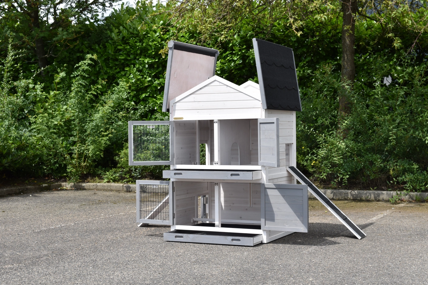 - Dit dierenverblijf is tegelijk als kippenhok en konijnenhok te gebruiken