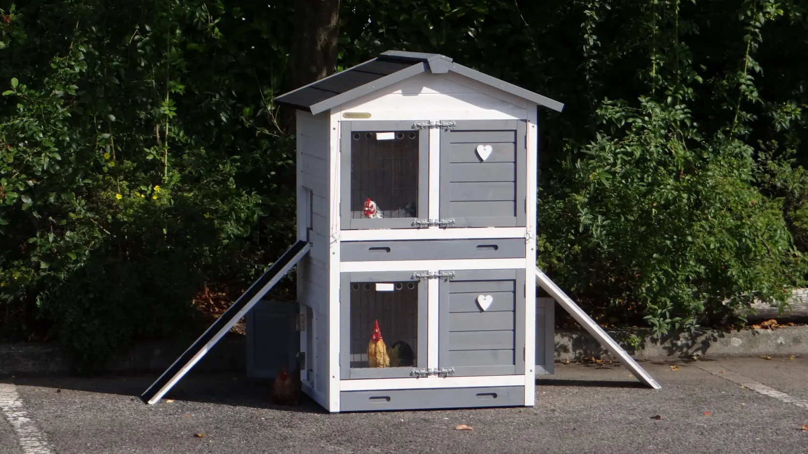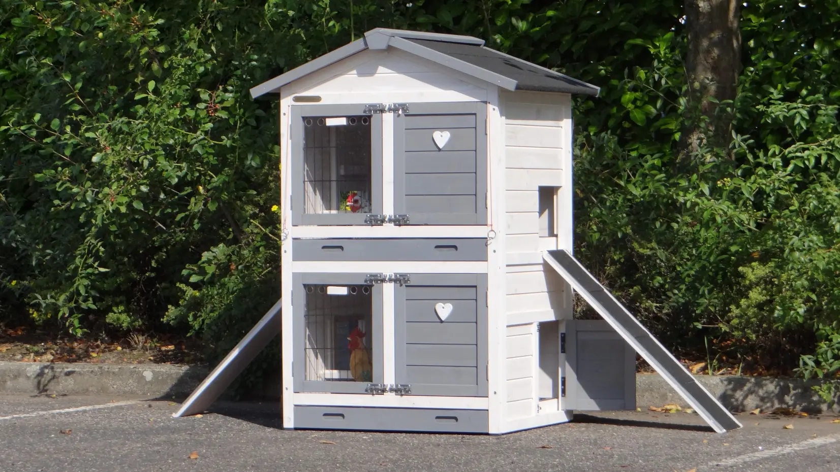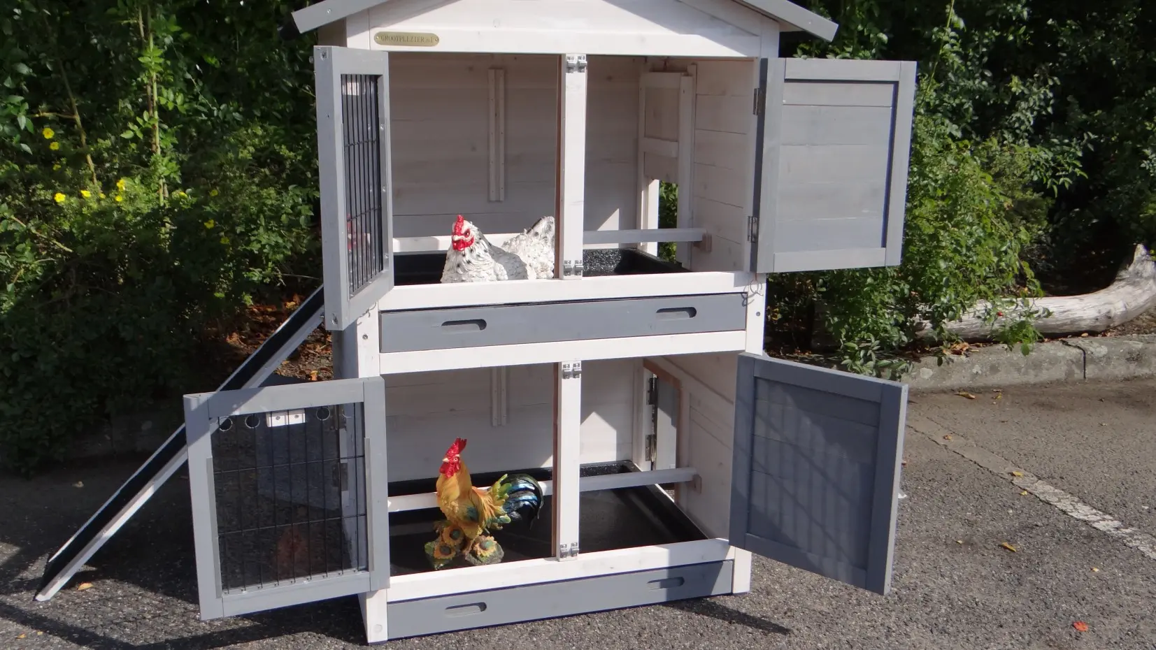 • Dit dierenverblijf is tegelijk als kippenhok en konijnenhok te gebruiken