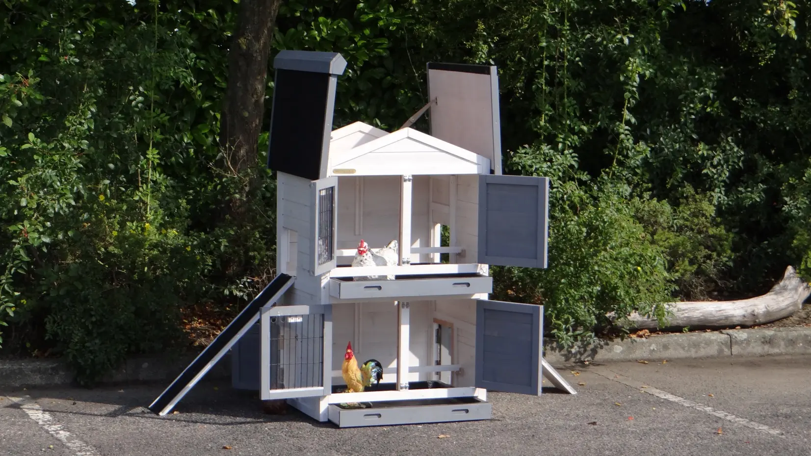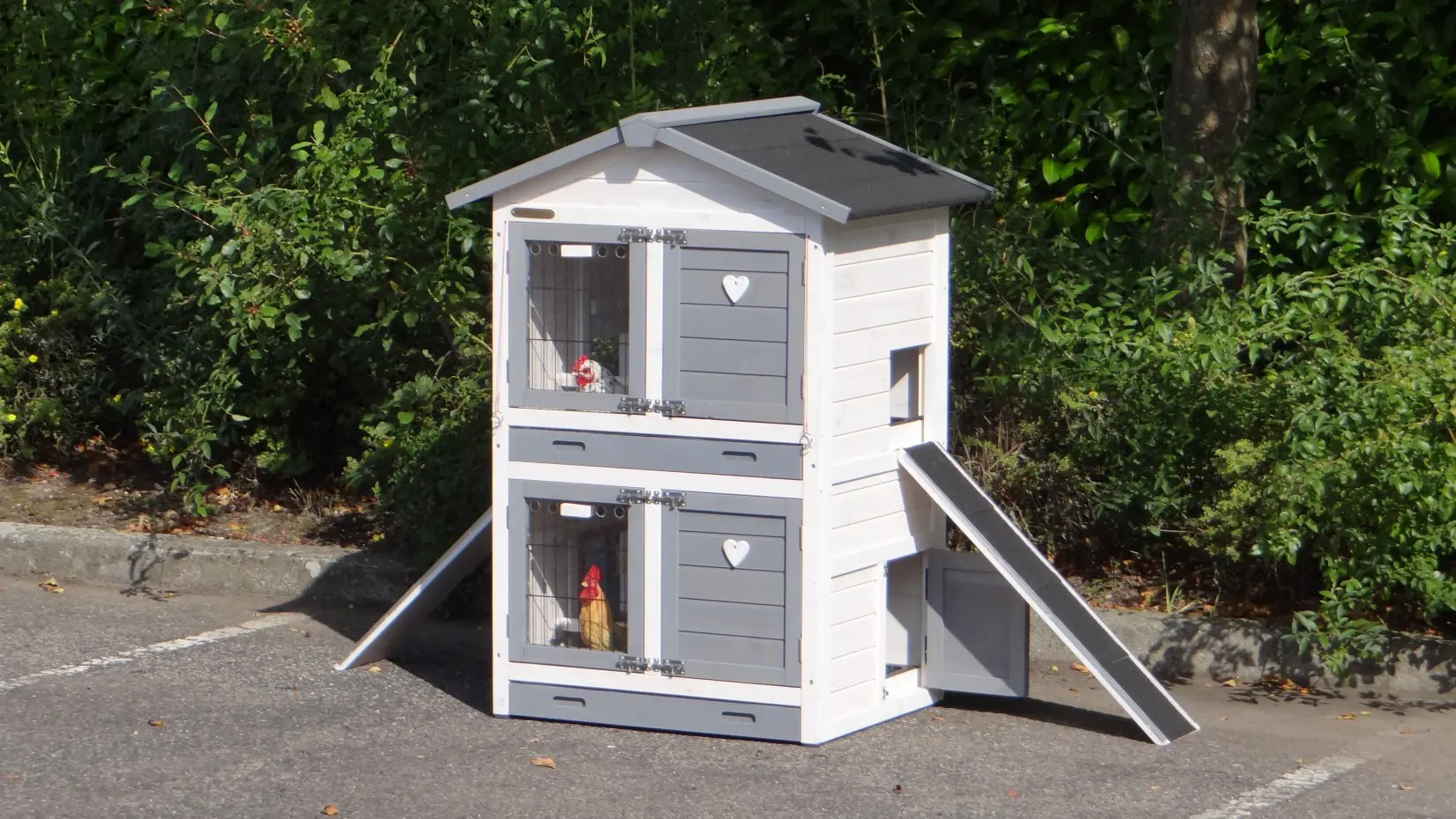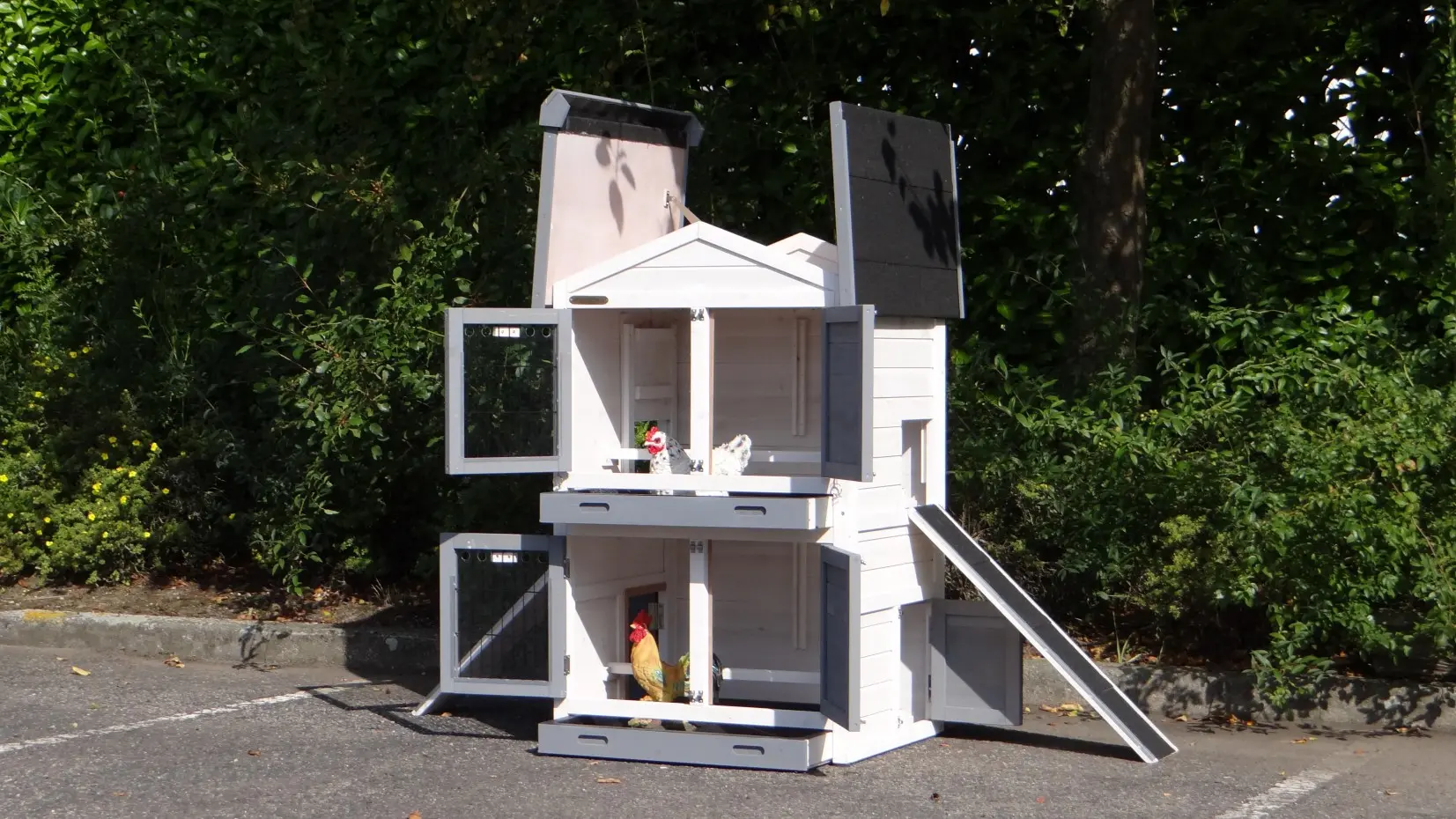 • Dit dierenverblijf is tegelijk als kippenhok en konijnenhok te gebruiken