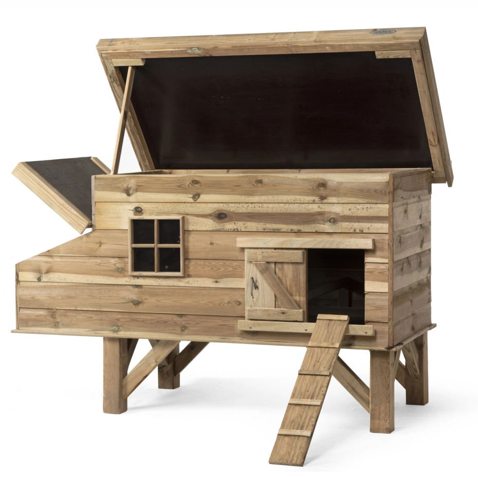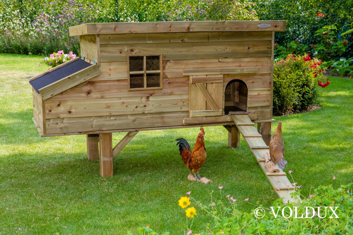- Dit kippenhok is voorzien van een legnest