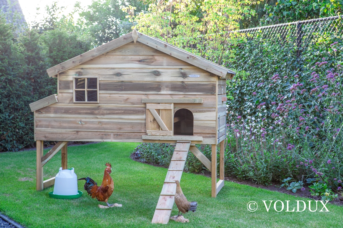 • Dit kippenhok is voorzien van een legnest