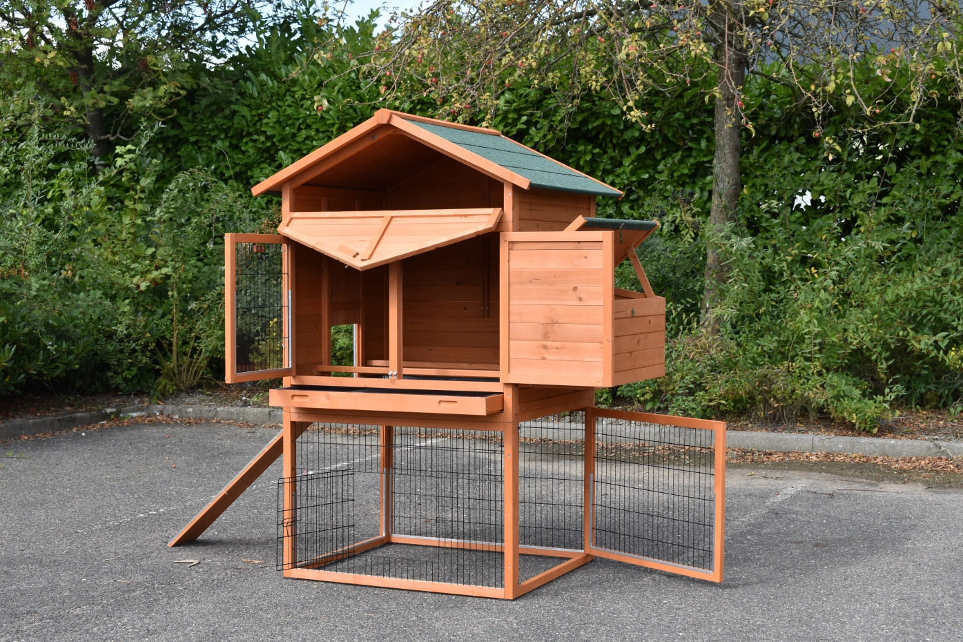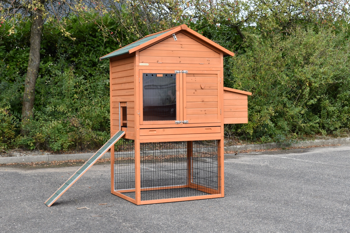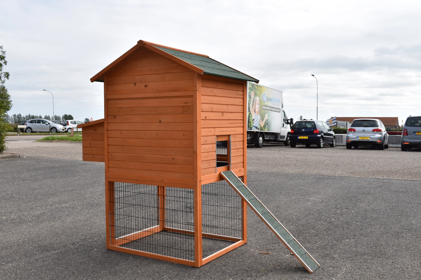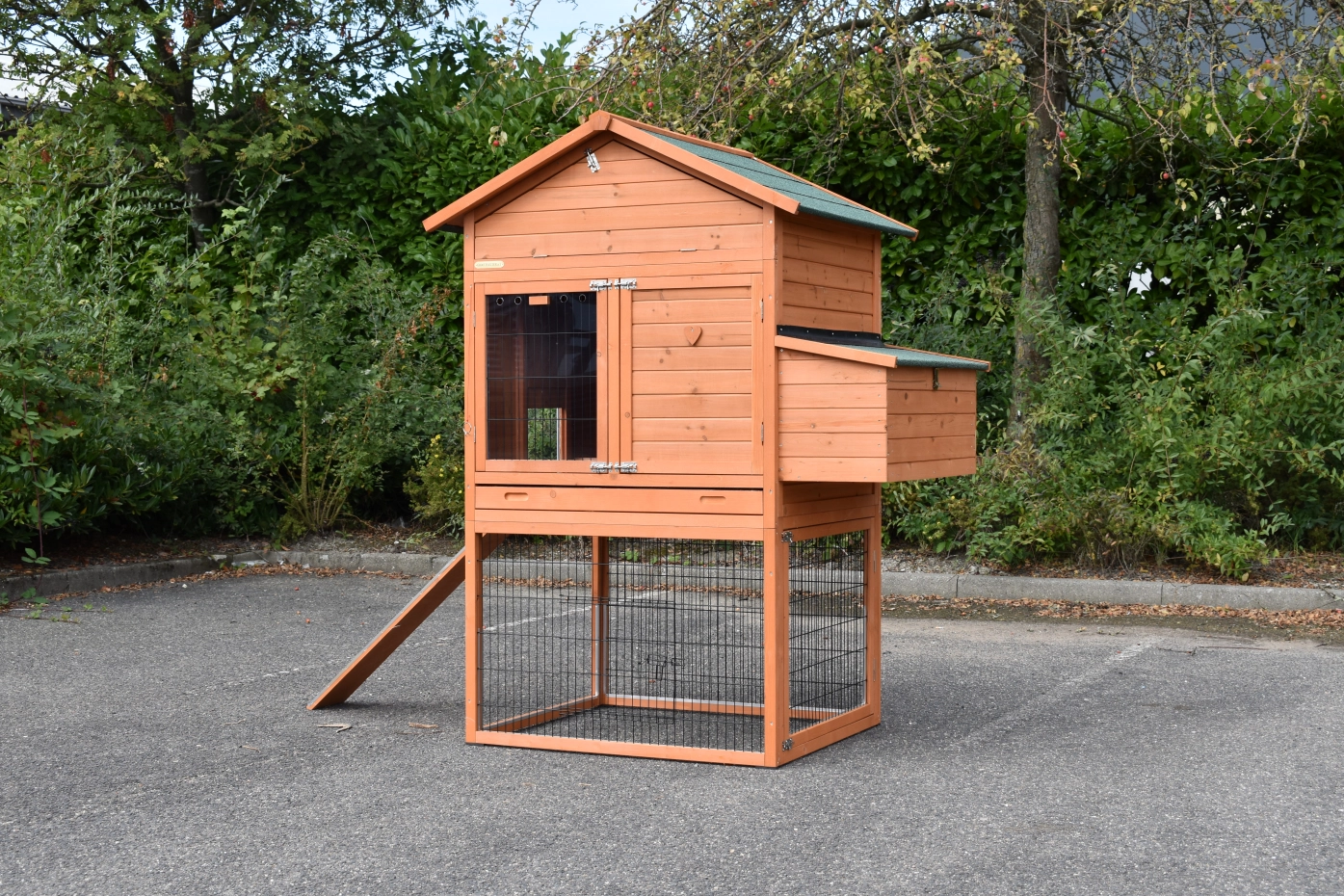 - Dit kippenhok is voorzien van een legnest