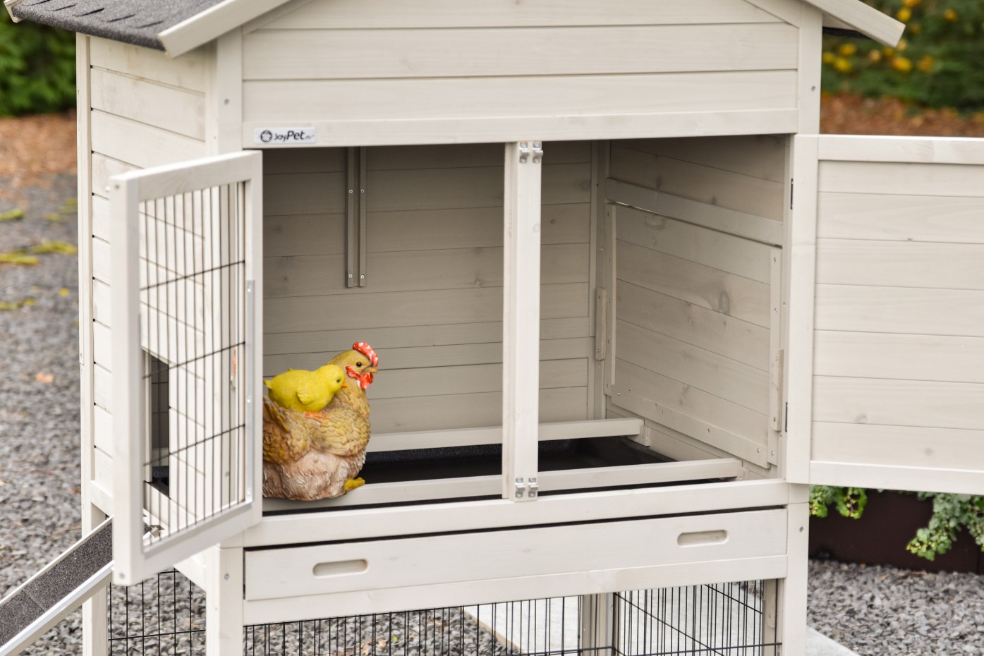 Kippenhok Prestige Medium. Kippenhok Prestige Medium is een geweldig hok voor uw kippen. Dit handige kippenhok is tot in detail uitstekend afgewerkt met ruime deuren en royaal nachthok hetwelk voorzien is van 2 zitstokken. Voor de optimale bescherming staat het kippenhok op rubberen poten. Kippenhok heeft een uitschuifbare kunststof mestlade. Dit maakt kippenhok Prestige Medium zeer praktisch in gebruik. Kippenhok Prestige Medium is eindeloos uitbreidbaar met o.a. een legnest en /of aanbouwrennen. U kunt dit kippenhok ook met kleine aanpassing eenvoudig andersom opbouwen.