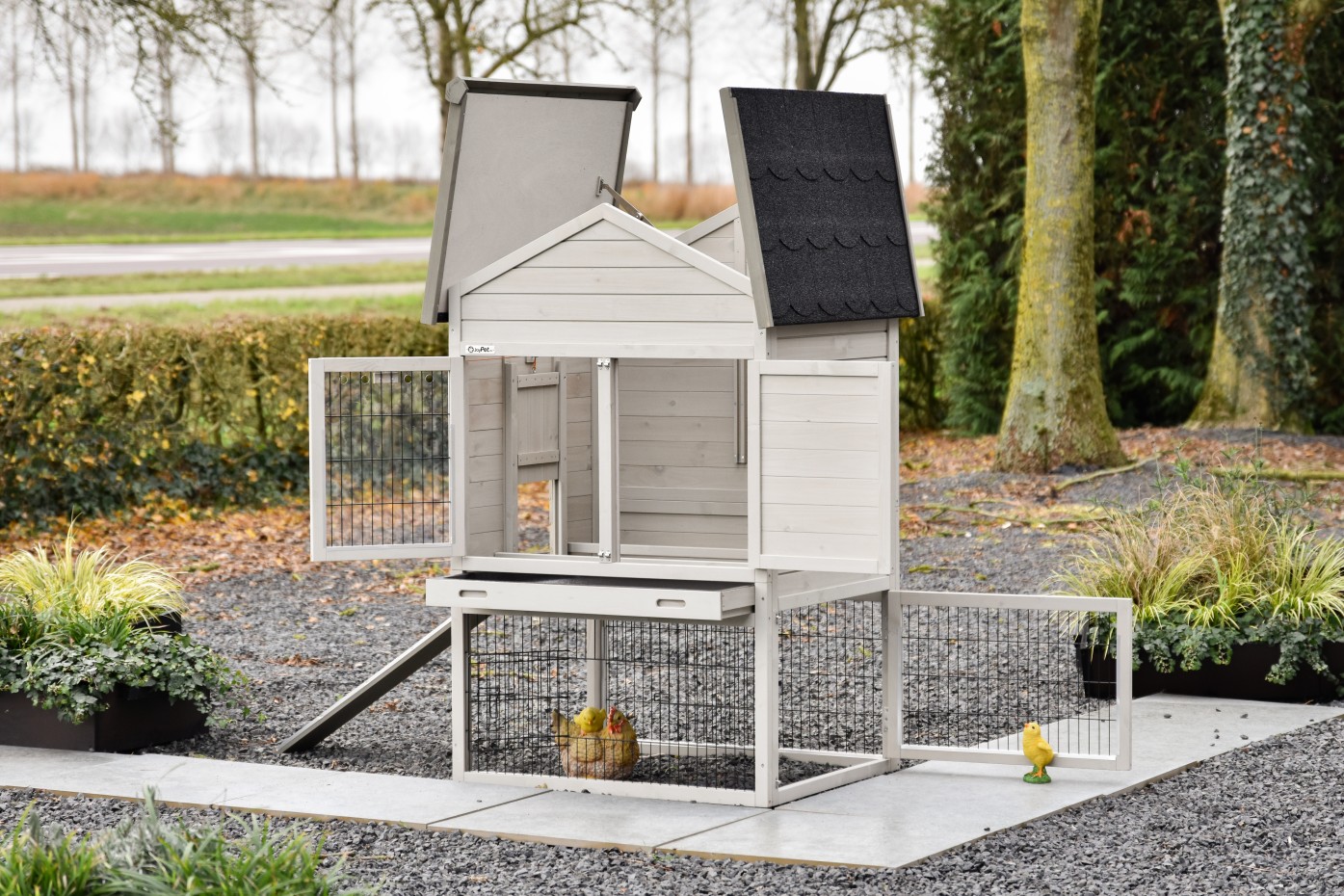 - Het hok is eenvoudig uit te breiden met aanbouwren(nen)