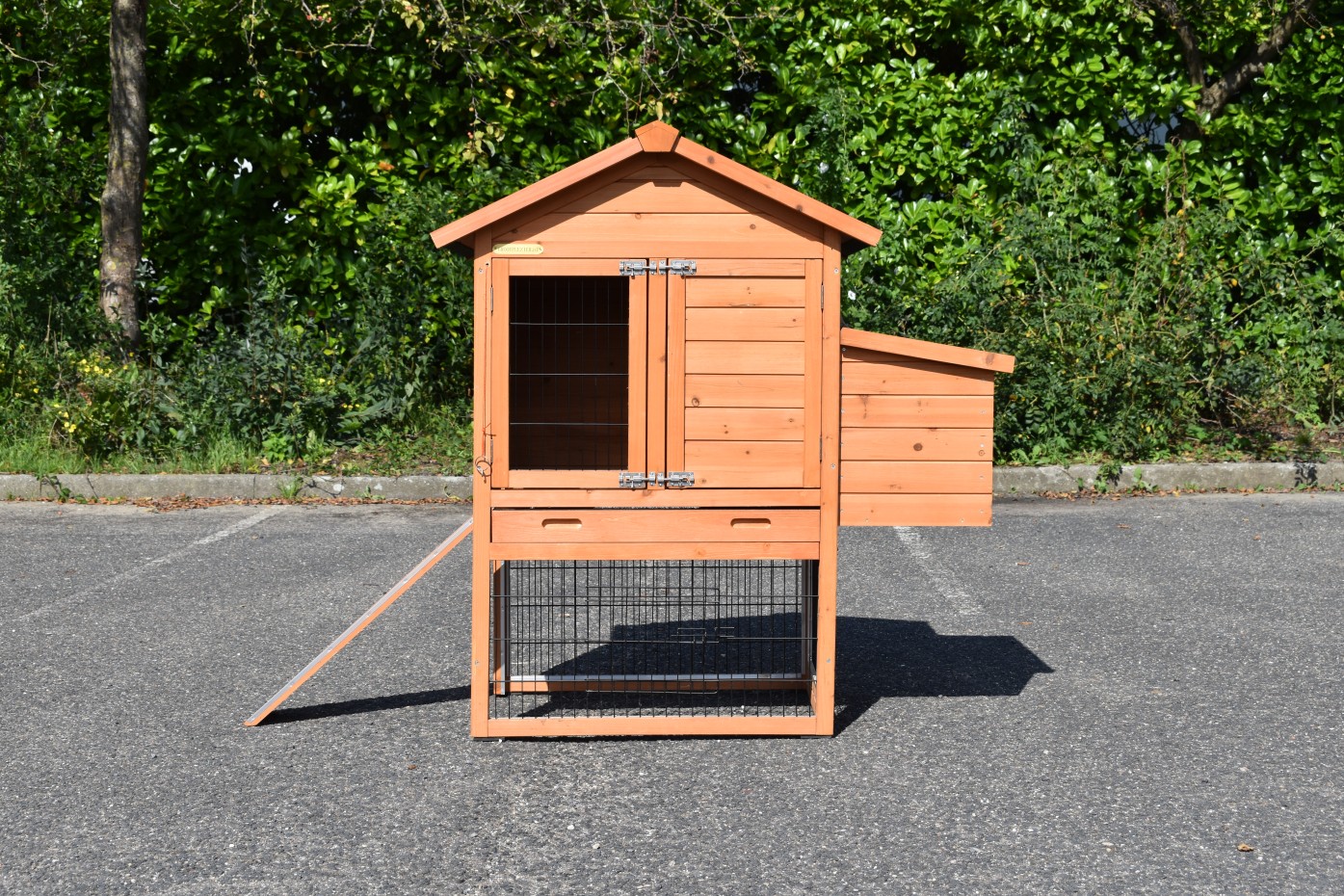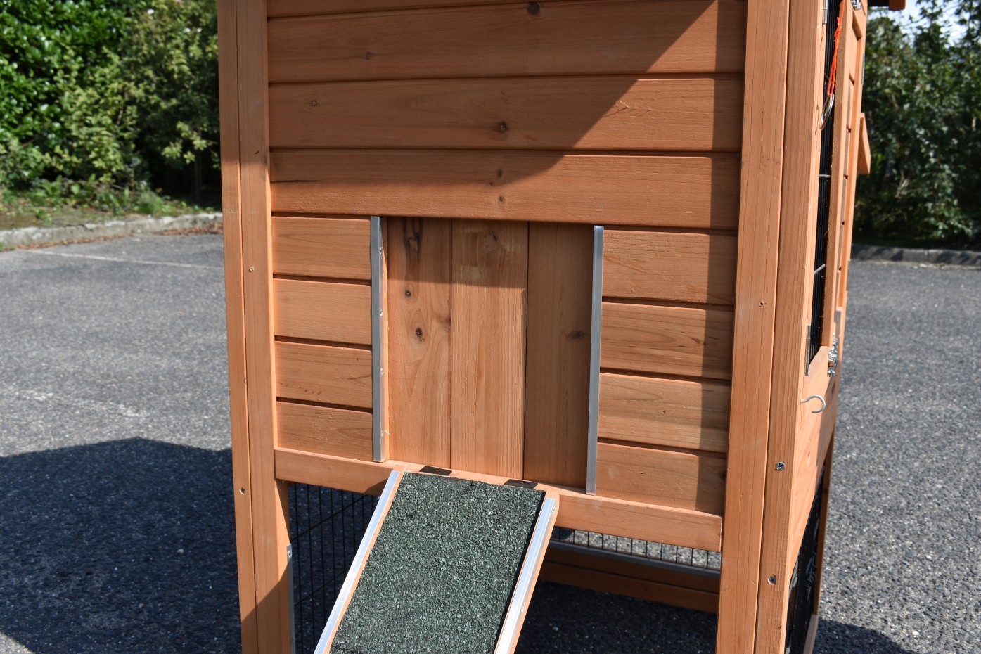 - Wanneer het hok niet op een beschutte plaats staat, dan adviseren wij om het te verankeren