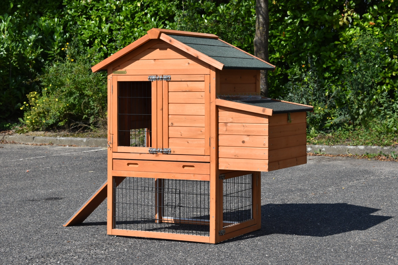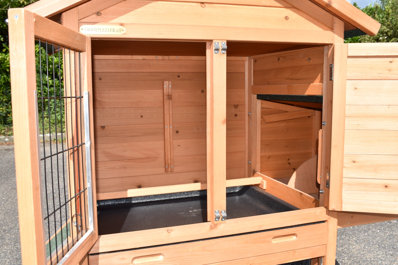 - Dit dierenhok is gemaakt van mooi dennenhout