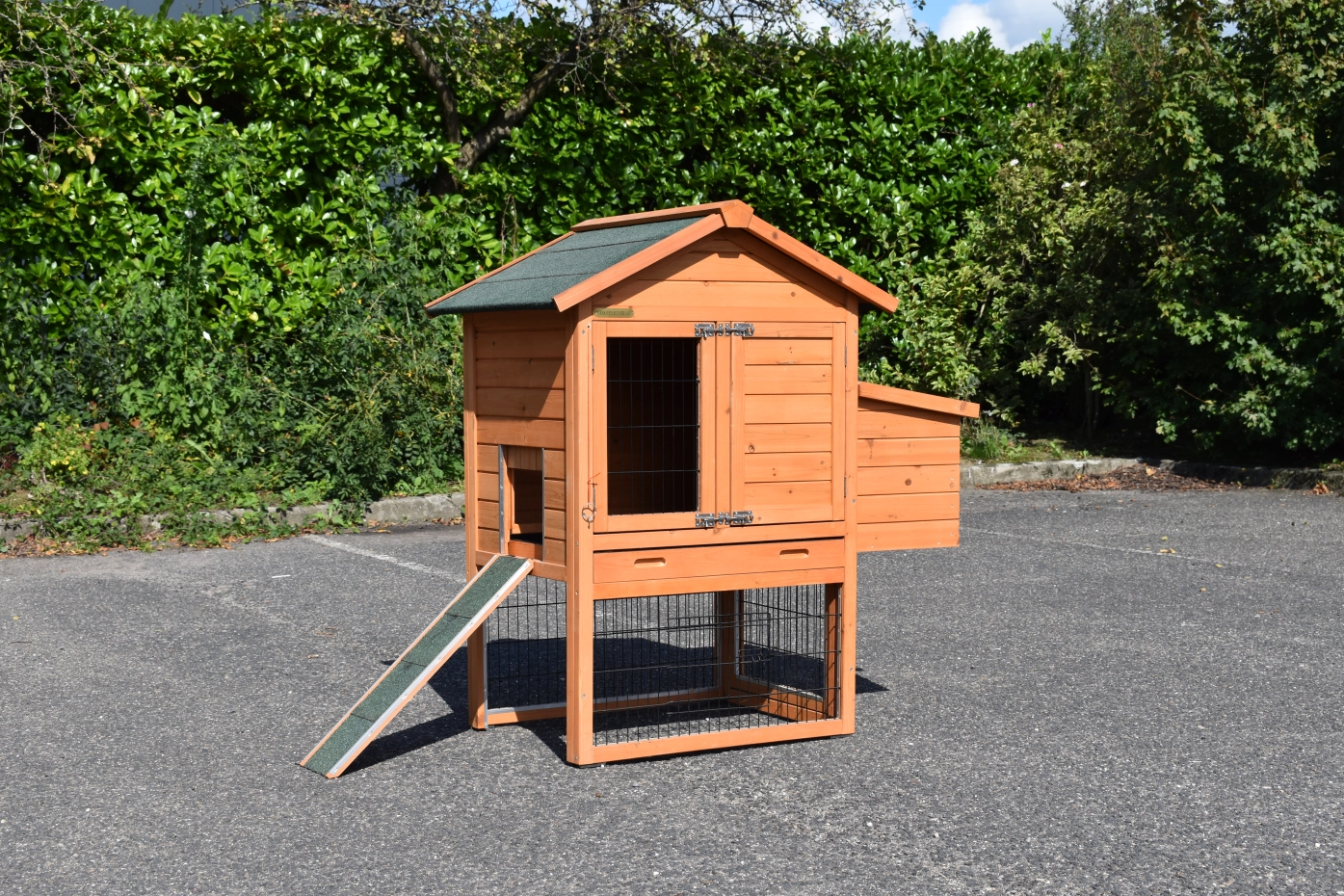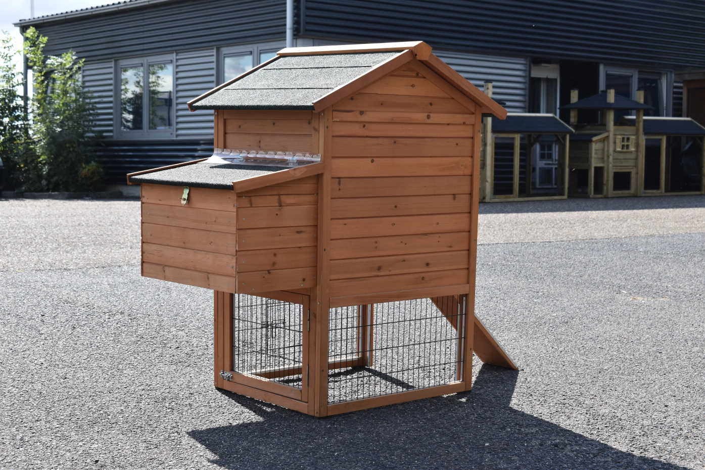 Kippenhok Prestige Small met legnest, een mooi kippenhokje voor kleine kippen. Ideaal kippenhokje om los in een bestaande ren te plaatsen. Dit kippenhok is tot elk detail goed afgewerkt met ruime deuren, handige schuiflade en nachthok met 1 zitstok. Voor optimale bescherming staat het kippenhok op rubberen poten. Dit maakt kippenhok Prestige Small met legnest zeer praktisch in gebruik. Kippenhok Prestige Small met legnest is handig uitbreidbaar met o.a. aanbouwrennen. U kunt dit kippenhok ook met kleine aanpassing eenvoudig andersom opbouwen.