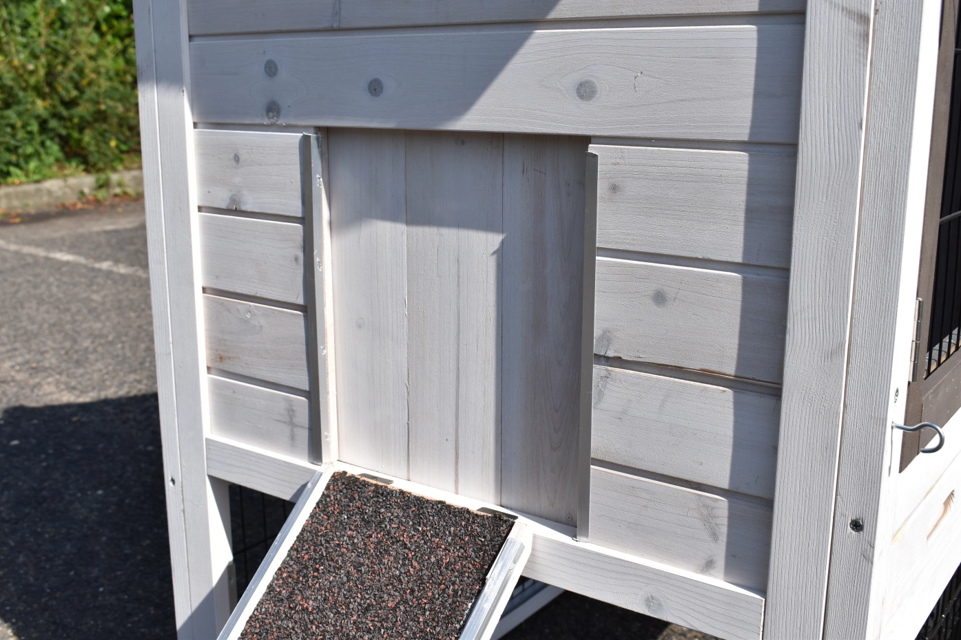 - Dit dierenhok is gemaakt van mooi dennenhout