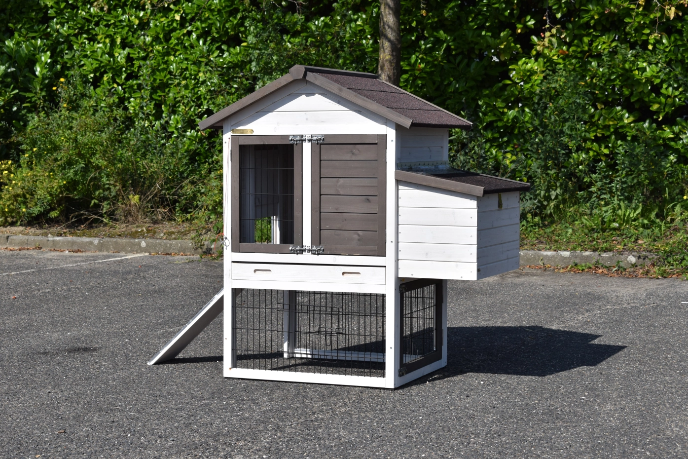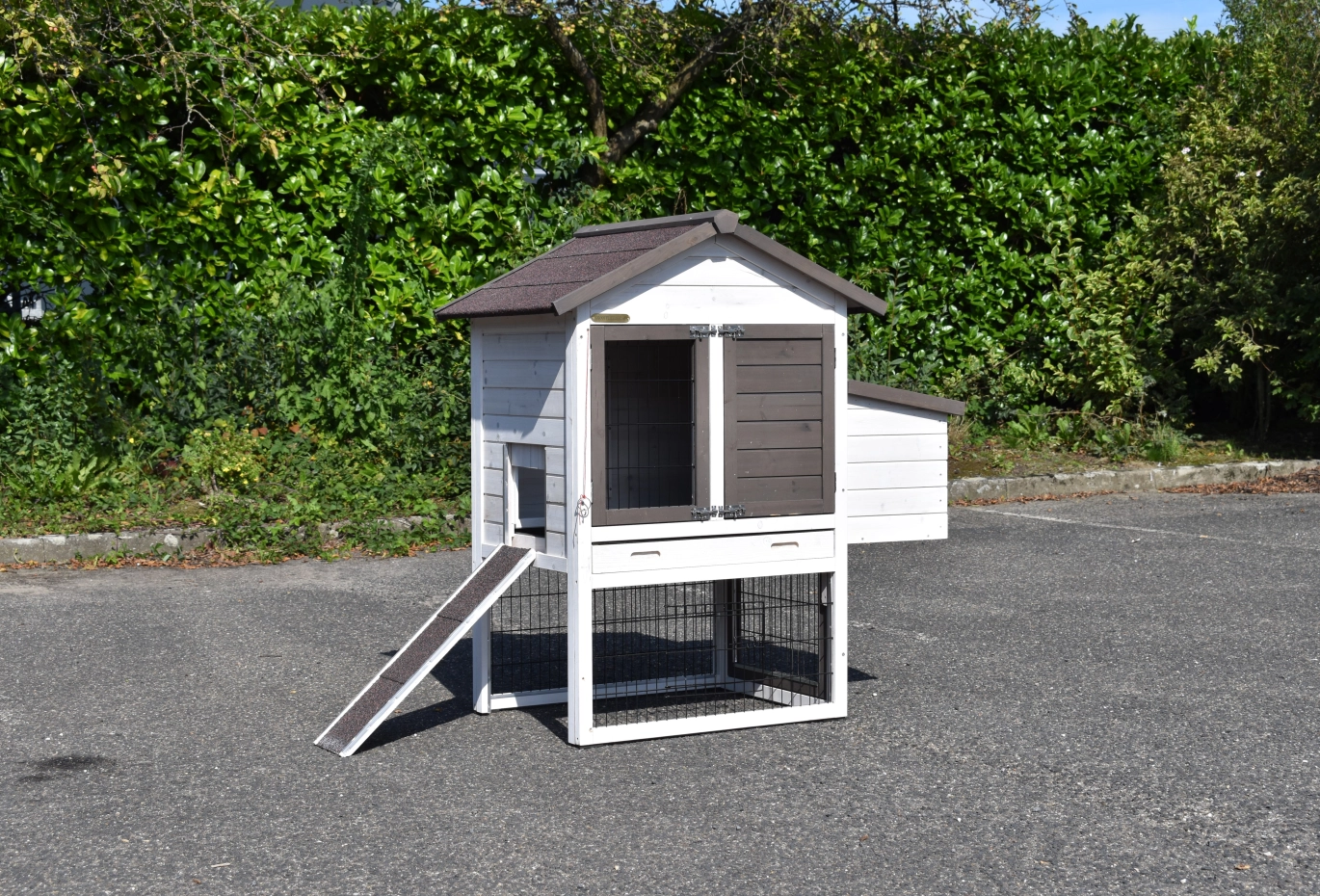 Kippenhok Prestige Small met legnest, een mooi kippenhokje voor kleine kippen. Ideaal kippenhokje om los in een bestaande ren te plaatsen. Dit kippenhok is tot elk detail goed afgewerkt met ruime deuren, handige schuiflade en nachthok met 1 zitstok. Voor optimale bescherming staat het kippenhok op rubberen poten. Dit maakt kippenhok Prestige Small met legnest zeer praktisch in gebruik. Kippenhok Prestige Small met legnest is handig uitbreidbaar met o.a. aanbouwrennen. U kunt dit kippenhok ook met kleine aanpassing eenvoudig andersom opbouwen.