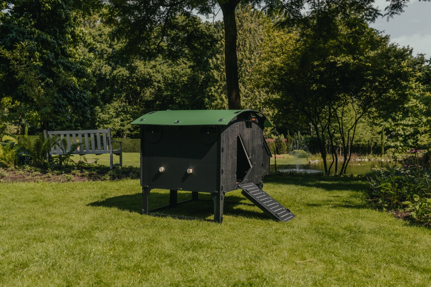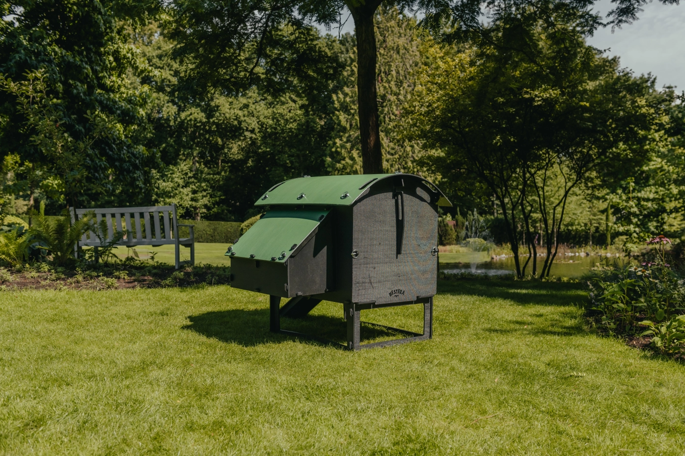 Dit Nestera kippenhok is gemaakt van gerecycled plastic. De kunststof kippenhokken kunnen makkelijk schoongemaakt worden met een tuinslang, hogedrukreiniger o.i.d. De hokken drogen erg snel, ook kan hok makkelijk ge(de)monteerd worden. Omdat het hok alleen maar gladde kunststof onderdelen heeft, kunnen de bloedluizen ook niet in het hok schuilen. Het kippenhok staat op poten, zodat uw kippen ook een schuilplaats hebben onder het hok. De kippenhokken van kunststof zijn onderhoudsvrij.