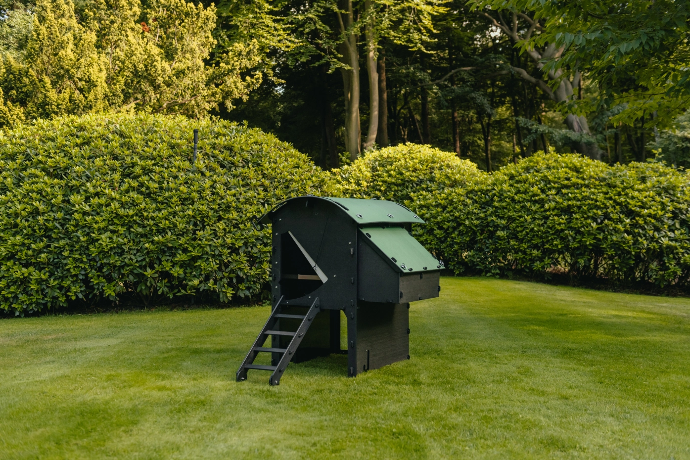 • Het kunststof hok is onderhoudsvrij