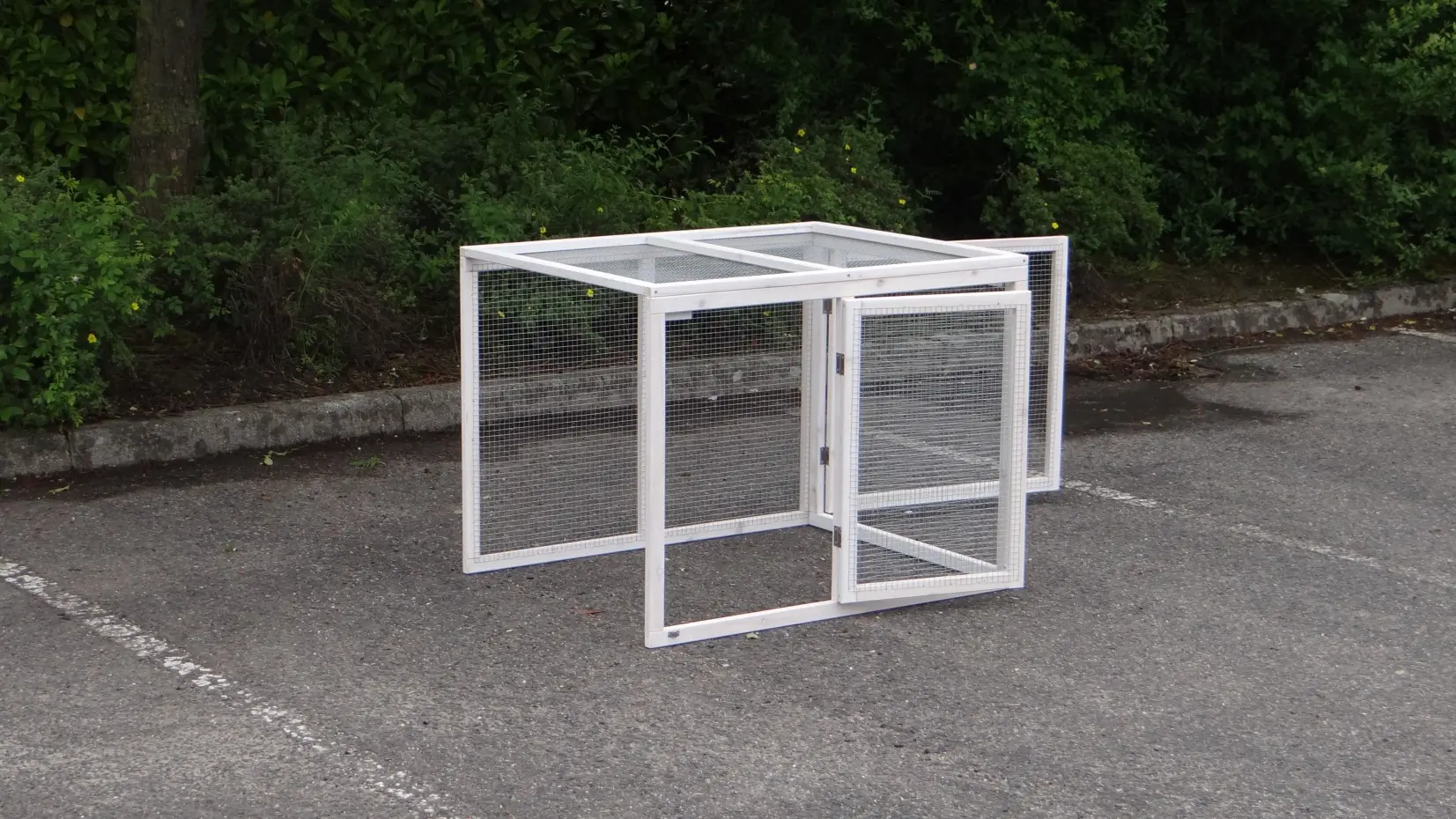 - De aanbouwren heeft een dak van gaas (ca. 12x12mm).