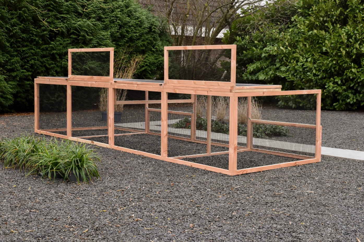 Ren Eggy is een losse ren zonder nachthok, perfect geschikt voor kippen, konijnen en zelfs katten. Deze ruime ren biedt volop bewegingsvrijheid en is voorzien van 4 opklapbare dakdelen, zodat je er eenvoudig bij kunt voor een grondige schoonmaak. Een praktische en ruime oplossing voor jouw dieren!