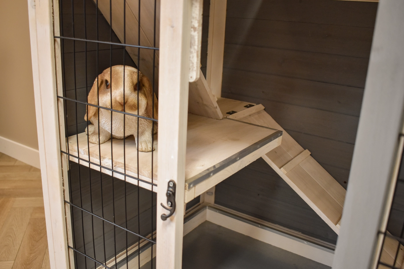 - Wij adviseren om uw konijn zindelijk te maken, omdat urine door de naden van het hok op de vloer kan lopen