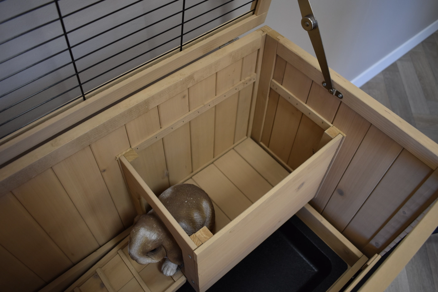 - Dit dierenhok is gemaakt van mooi dennenhout