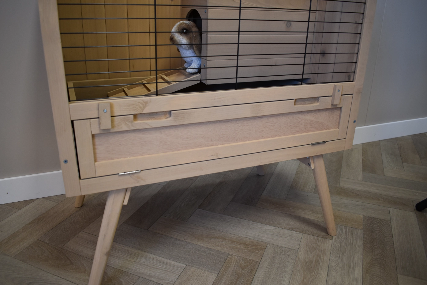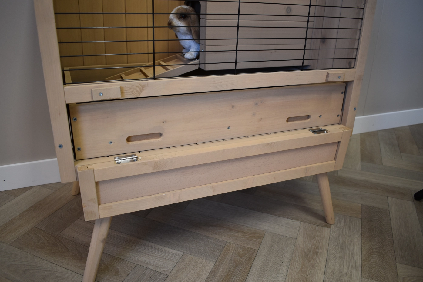 - Wij adviseren om uw konijn zindelijk te maken, omdat urine door de naden van het hok op de vloer kan lopen