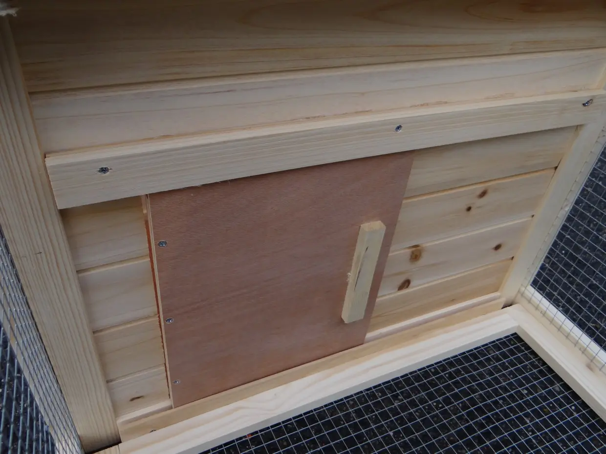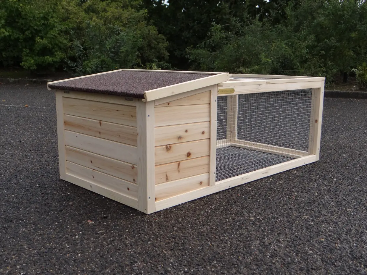 - Dit dierenhok is gemaakt van mooi dennenhout