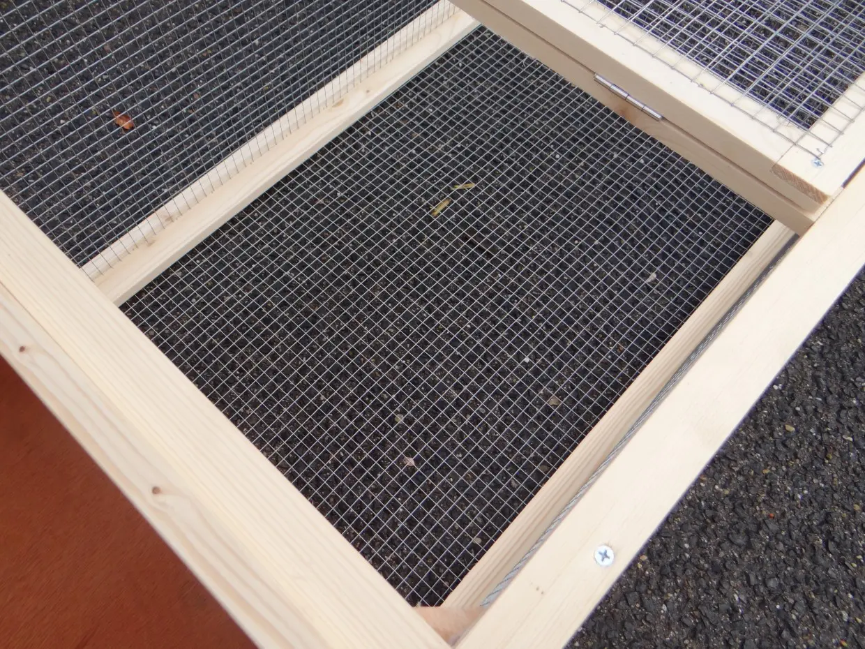 - De aanbouwren heeft een dak van gaas (ca. 12x12mm)